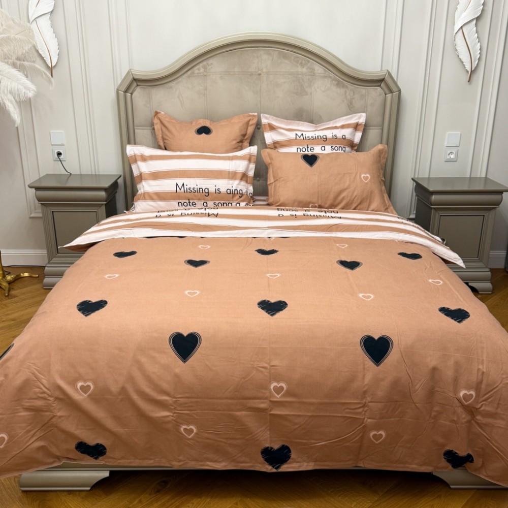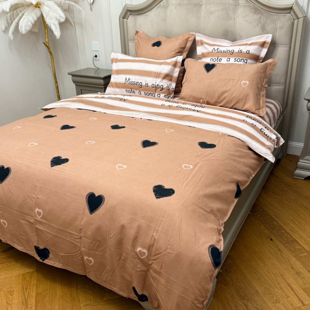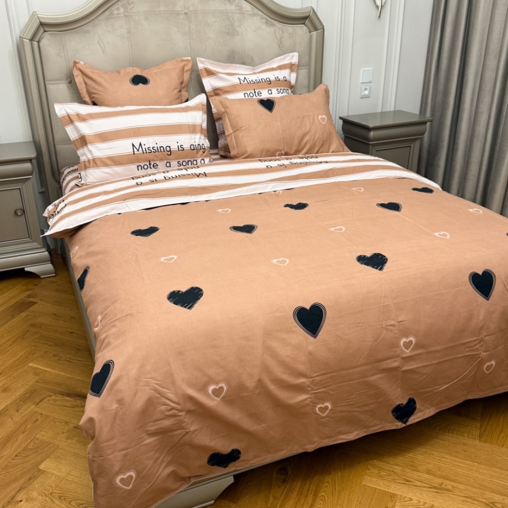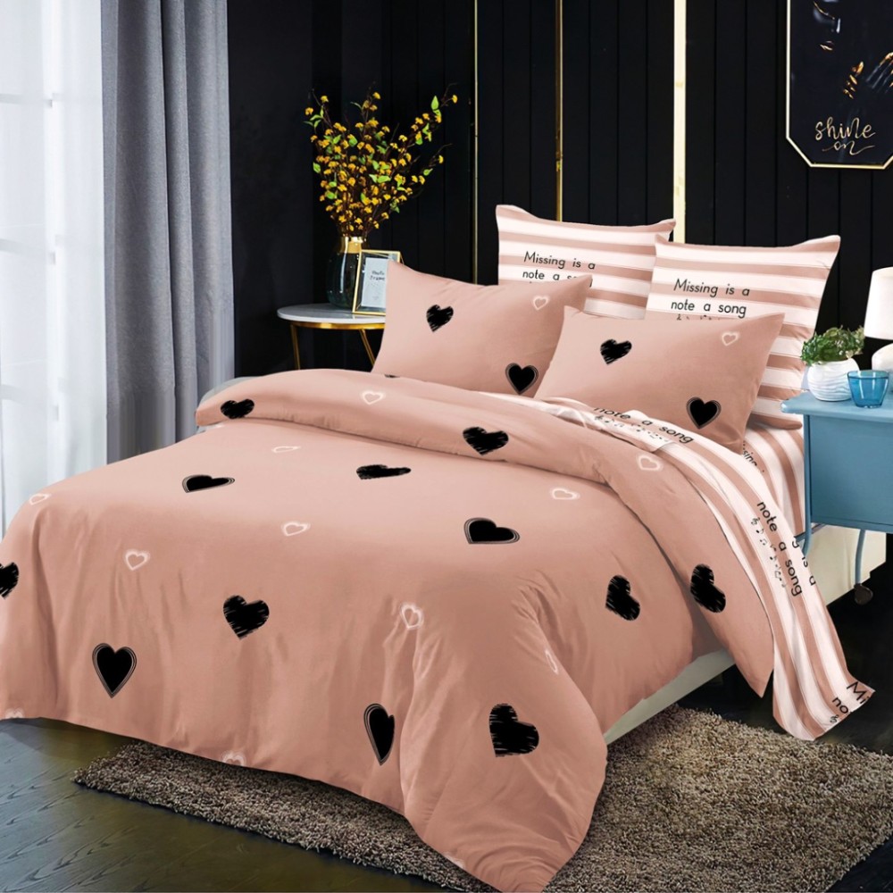 Lenjerie Pat Dublu, FINET, 6 piese, Roz Prăfuit, Alb, Negru, Inimioare, Primavara Casa, cod produs: PRM-FN-A669