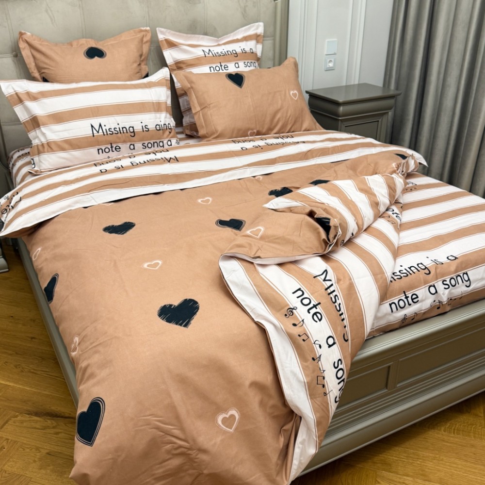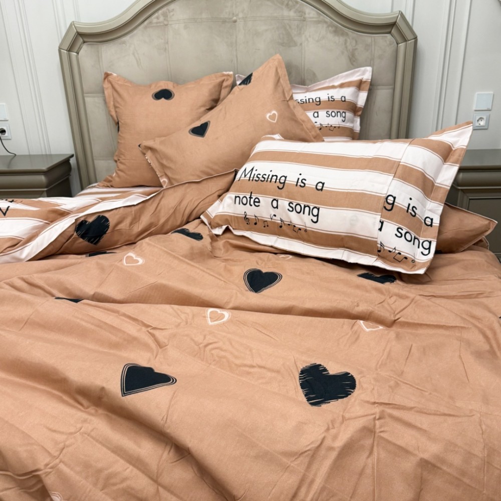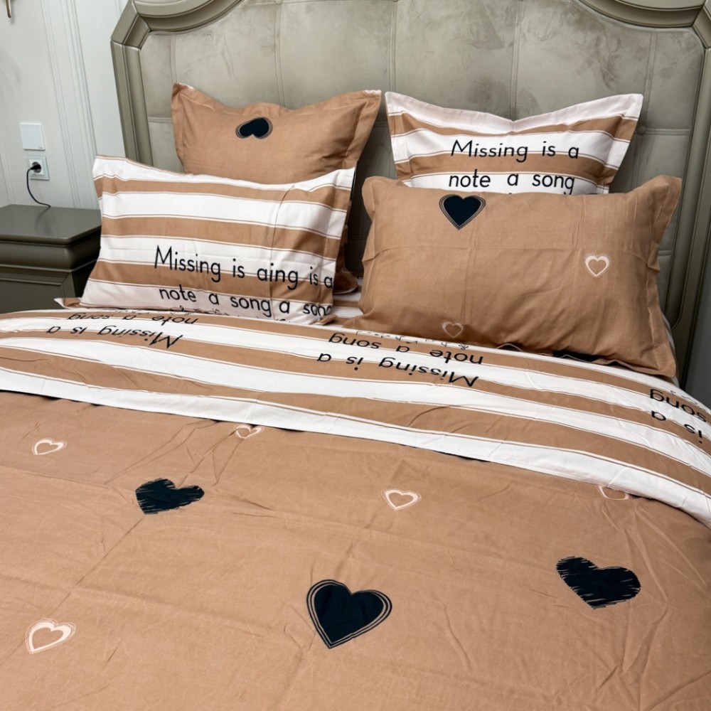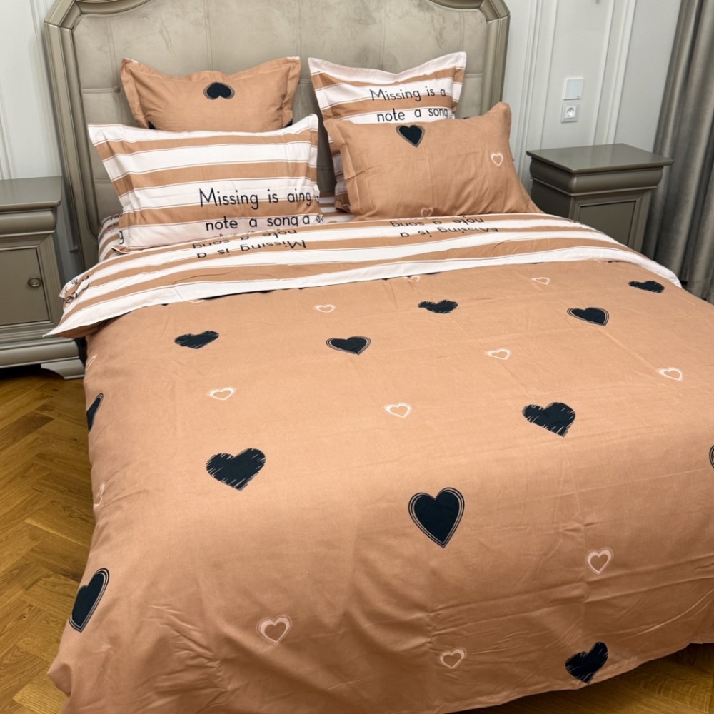 Lenjerie Pat Dublu, FINET, 6 piese, Roz Prăfuit, Alb, Negru, Inimioare, Primavara Casa, cod produs: PRM-FN-A669