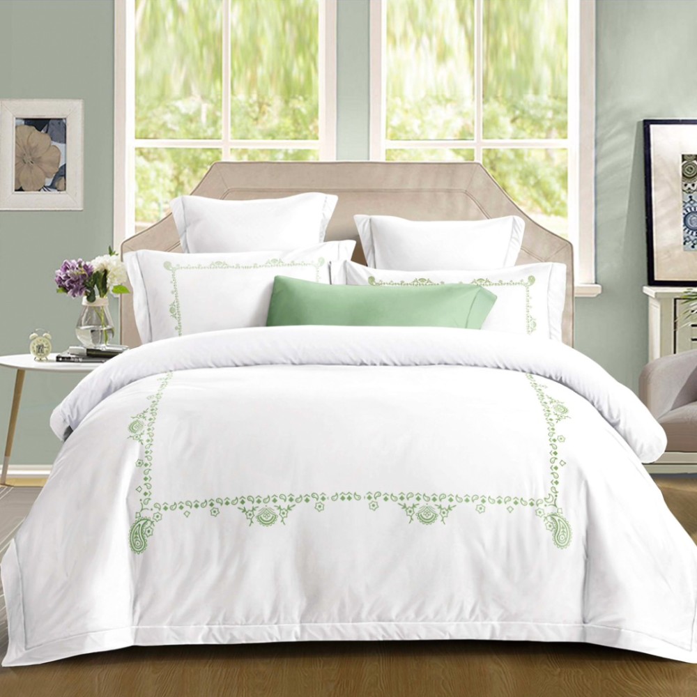 Lenjerie pat dublu, Primăvara, FINET, Cearsaf cu Elastic 180x200cm, 4 piese, Alb, Verde, model elegant clasic - Lux Absolut, Delicatețe și Eleganță Desăvârșită, Primavara Casa, cod produs: PRM-B-BG8014