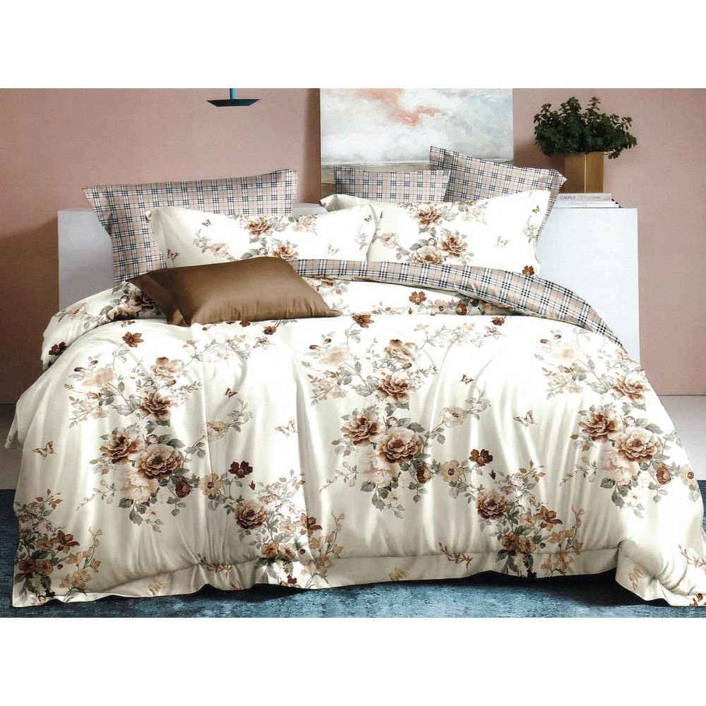 Lenjerie pat dublu, Pucioasa Romania, 4 piese, Bumbac Satinat Superior, Bej, fluturi, flori, Ralex Pucioasa, cod produs: RXE108