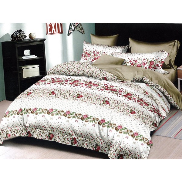 Lenjerie pat dublu, Pucioasa Romania, 4 piese, Bumbac Satinat Superior, Crem-Roz, flori, Ralex Pucioasa, cod produs: RXE109