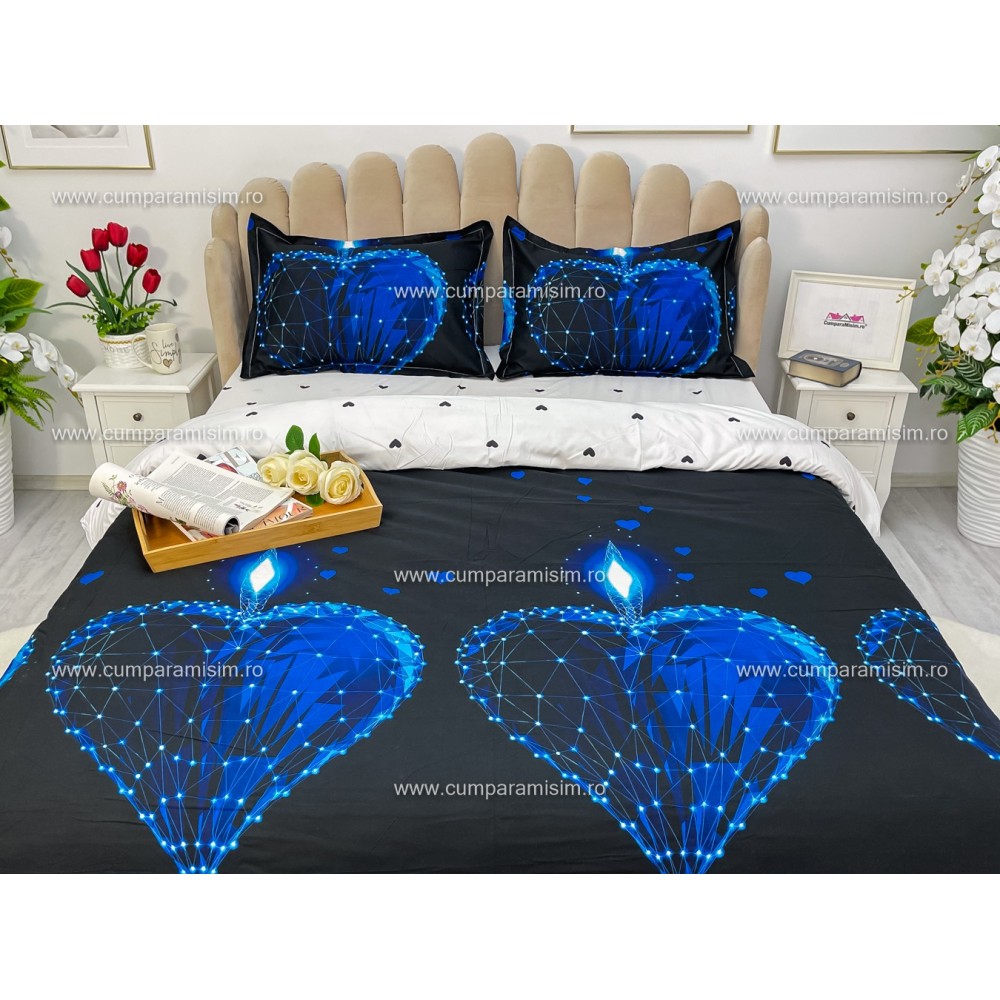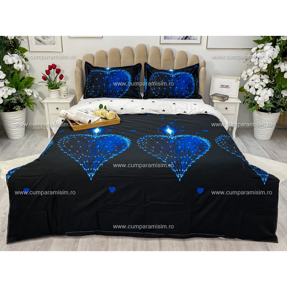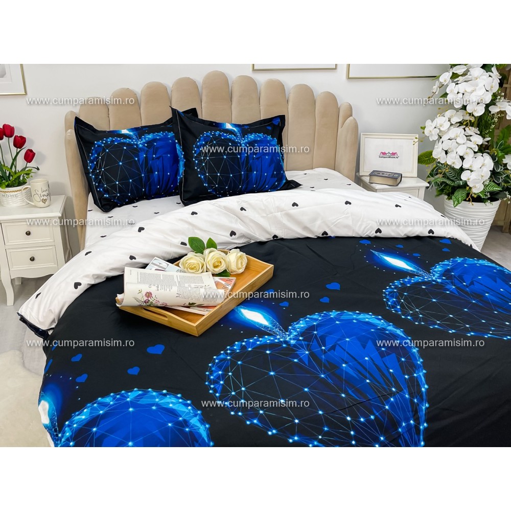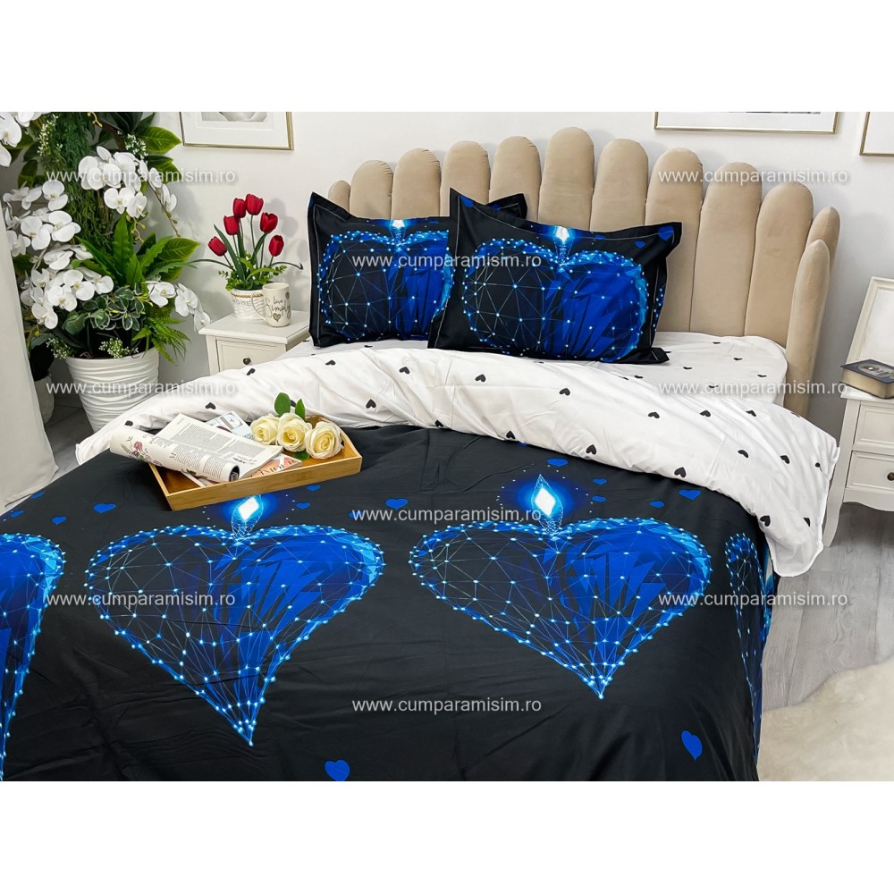 Lenjerie pat dublu, Pucioasa Romania, 4 piese, Bumbac Satinat Superior ELV18, Ralex Pucioasa, cod produs: RXE10