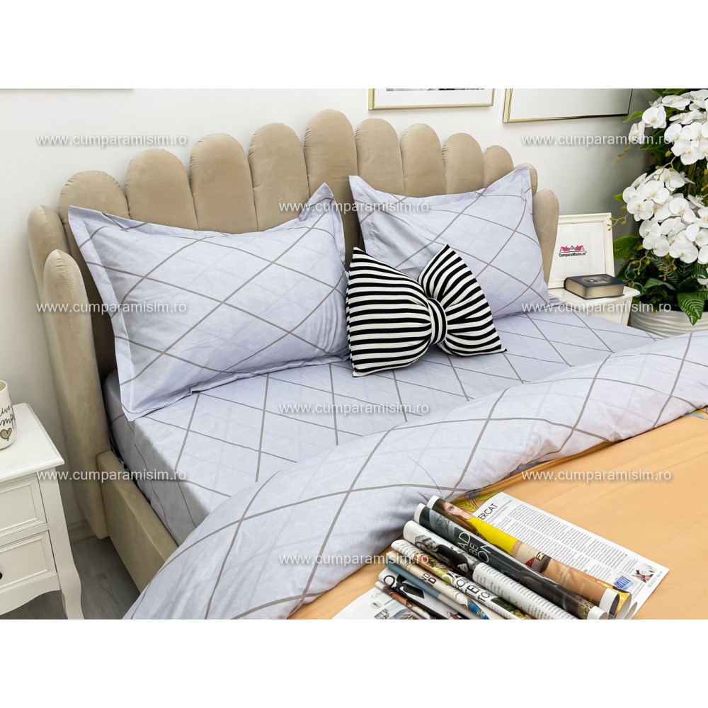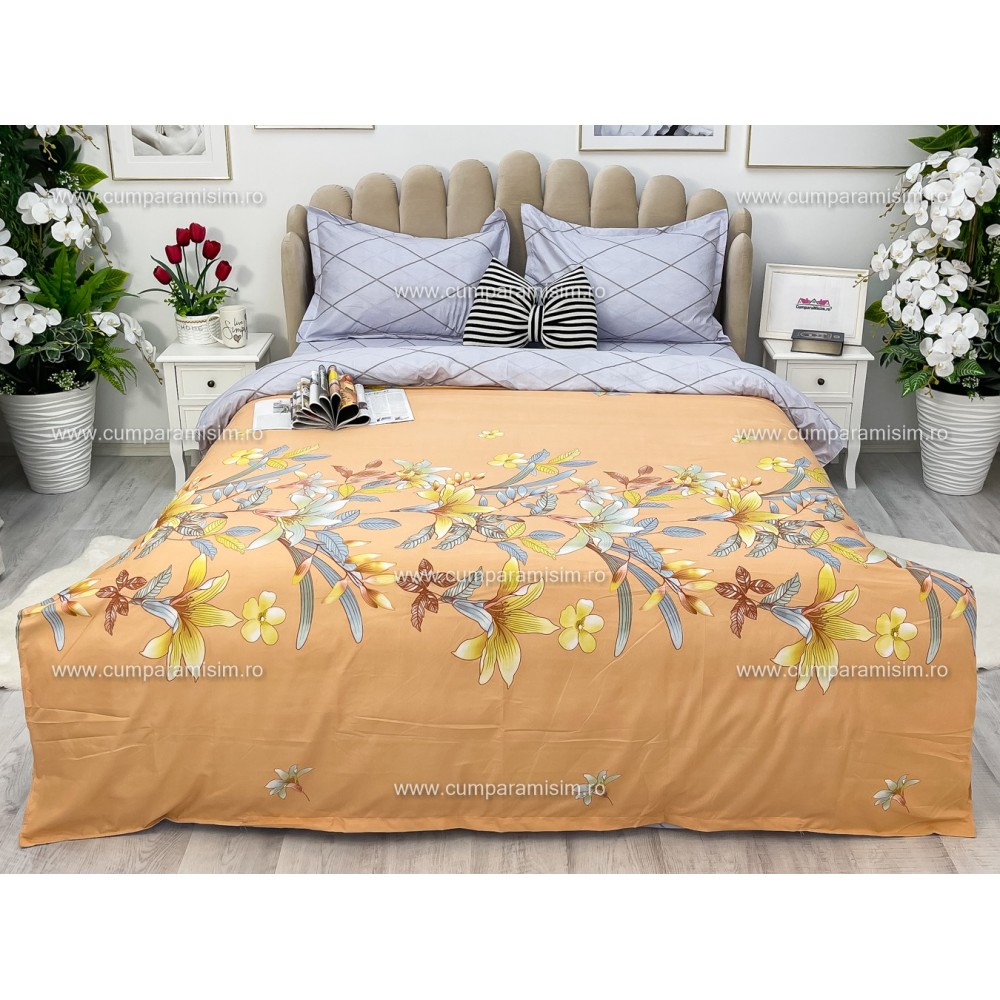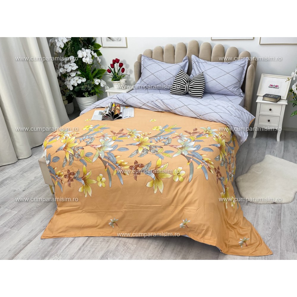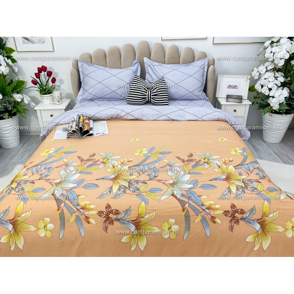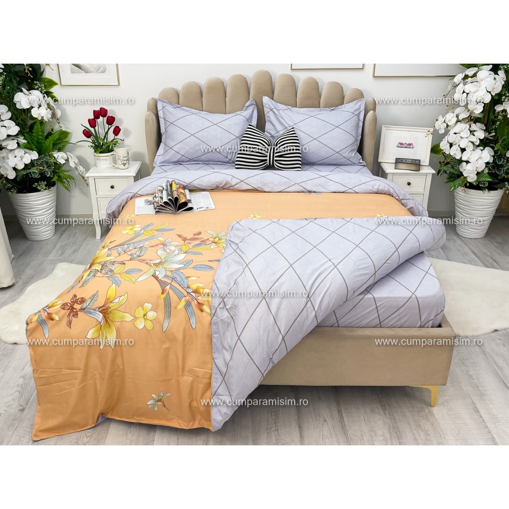Lenjerie pat dublu, Pucioasa Romania, 4 piese, Bumbac Satinat Superior ELV48, Ralex Pucioasa, cod produs: RXE43