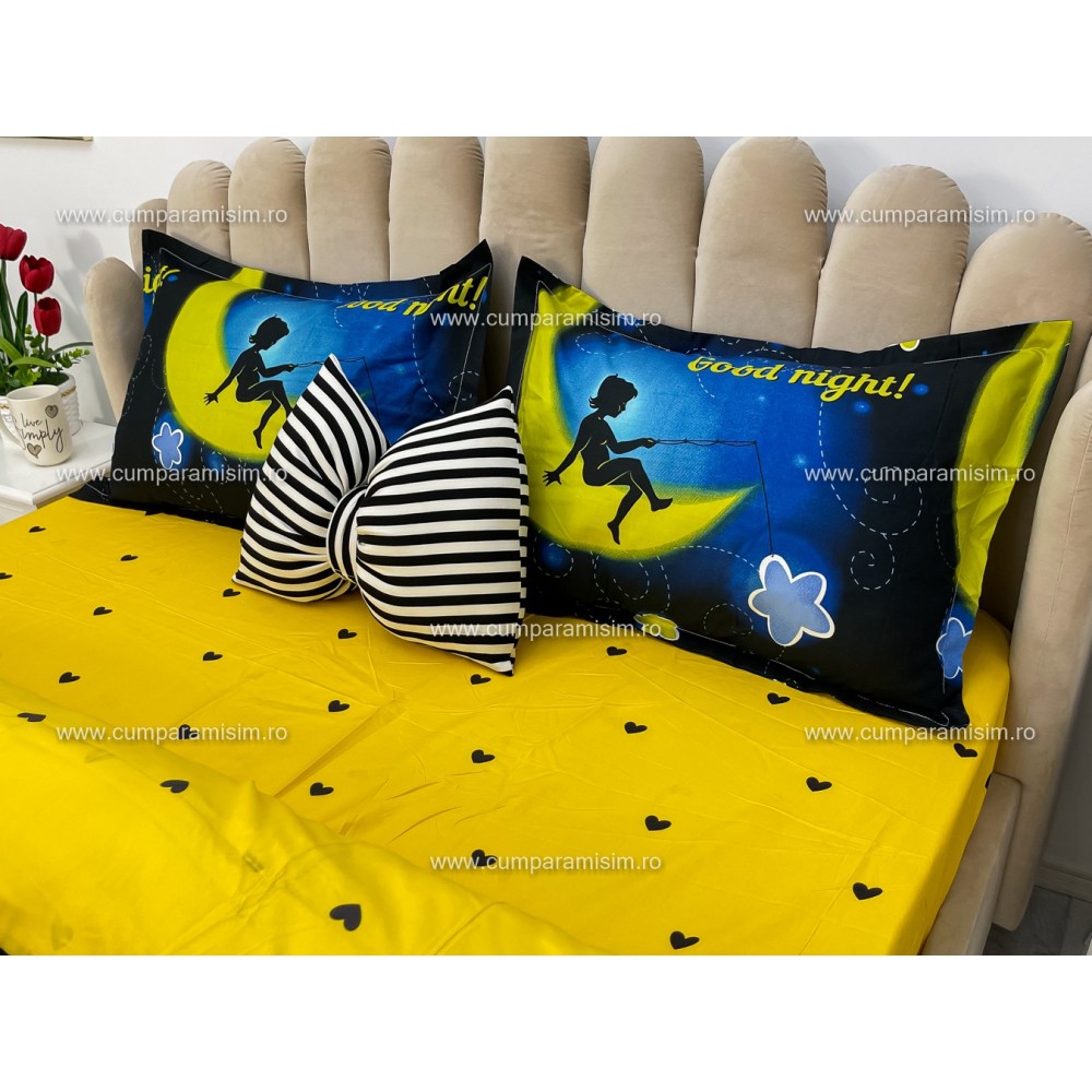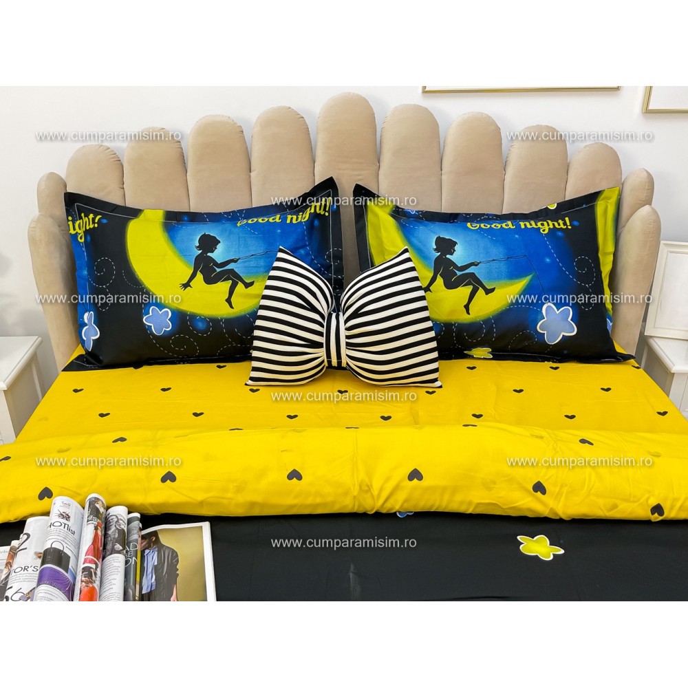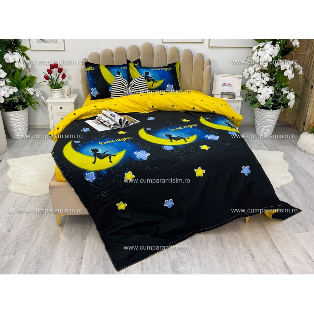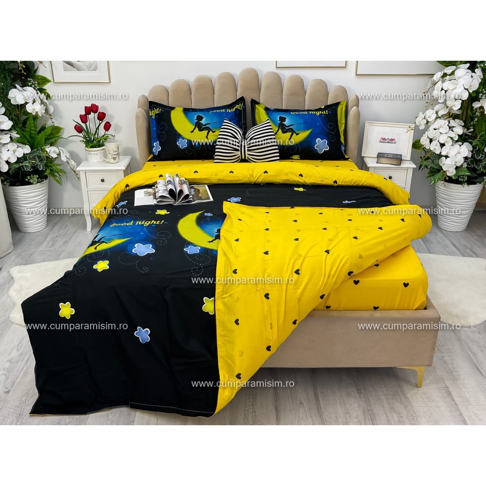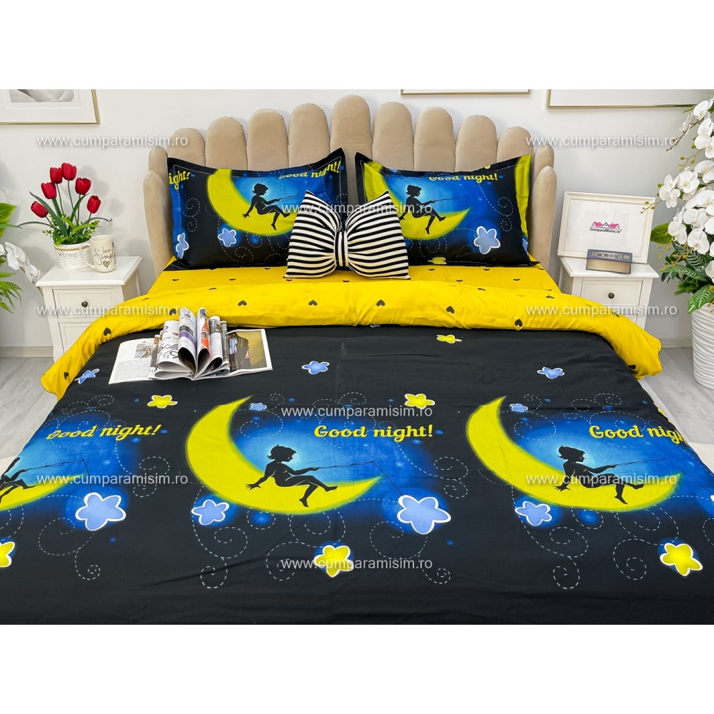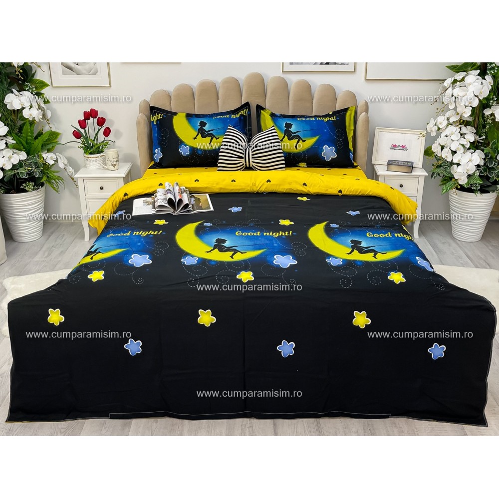 Lenjerie pat dublu, Pucioasa Romania, 4 piese, Bumbac Satinat Superior ELV53, Ralex Pucioasa, cod produs: RXE49