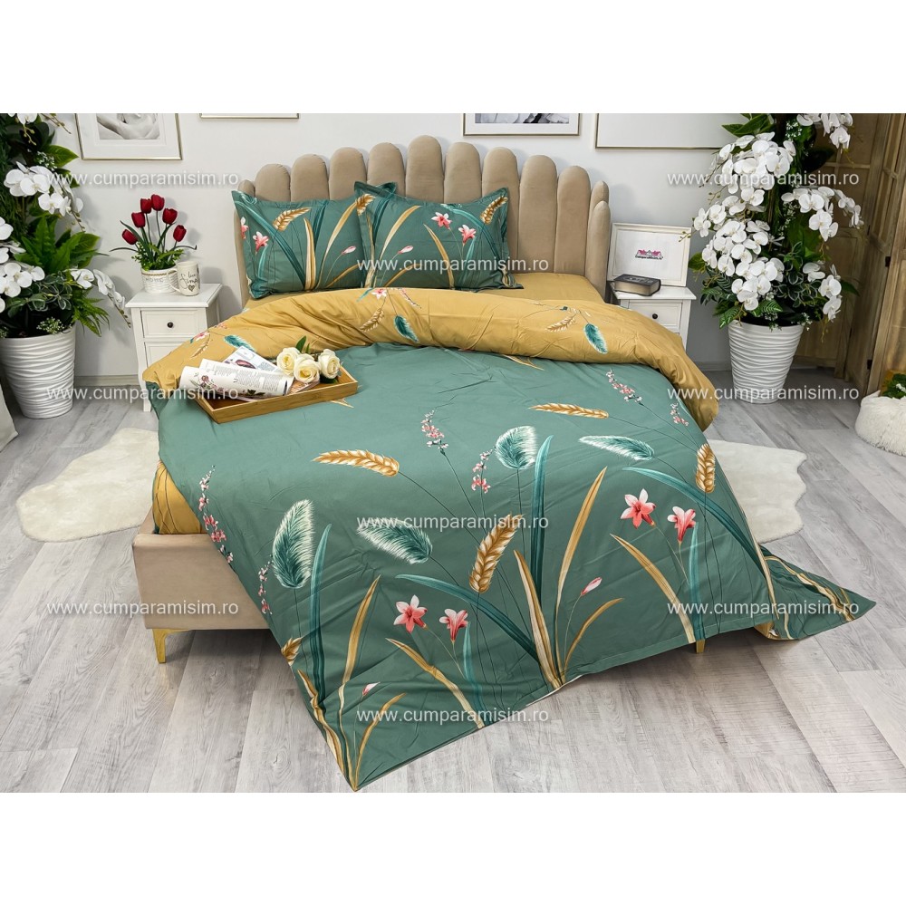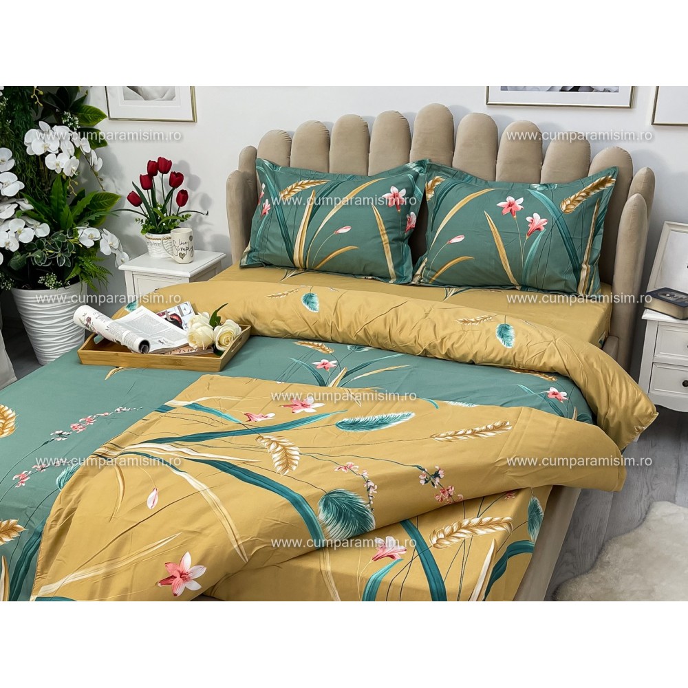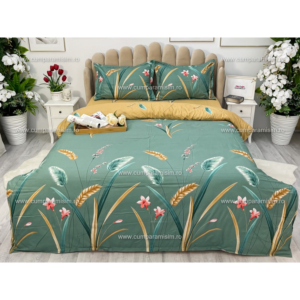 Lenjerie pat dublu, Pucioasa Romania, 4 piese, Bumbac Satinat Superior ELV60, Ralex Pucioasa, cod produs: RXE57