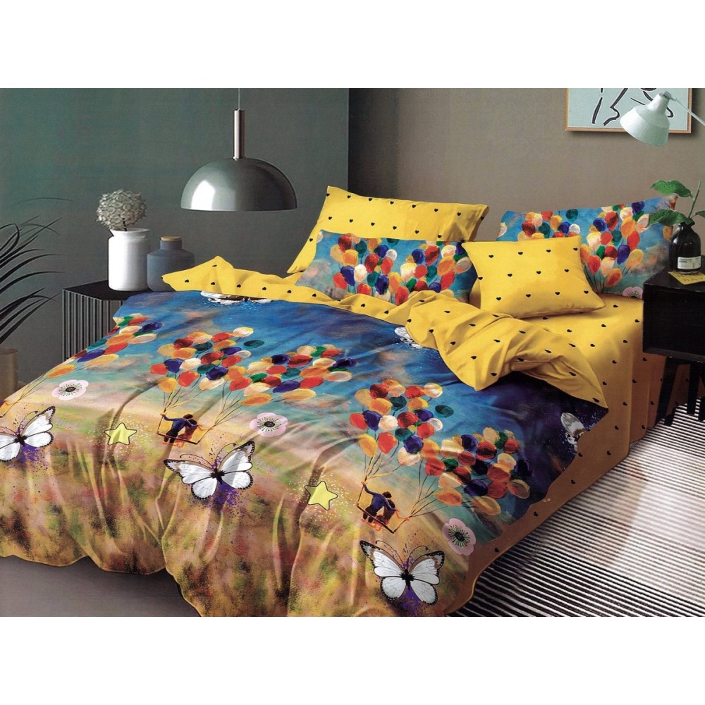 Lenjerie pat dublu, Pucioasa Romania, 4 piese, Bumbac Satinat Superior, Galben, fluturi, baloane, Ralex Pucioasa, cod produs: RXE137
