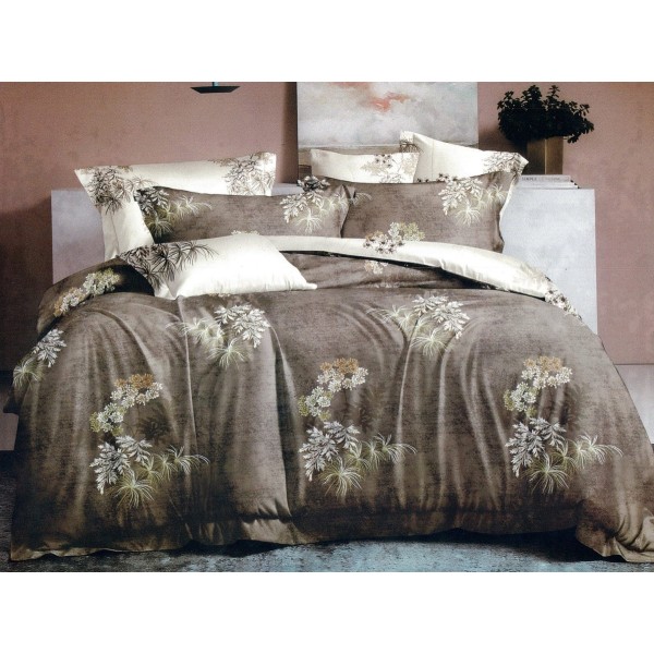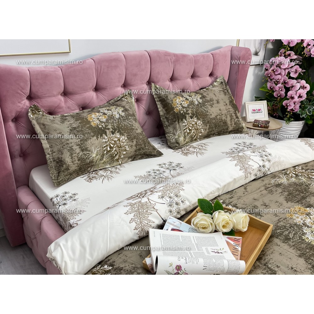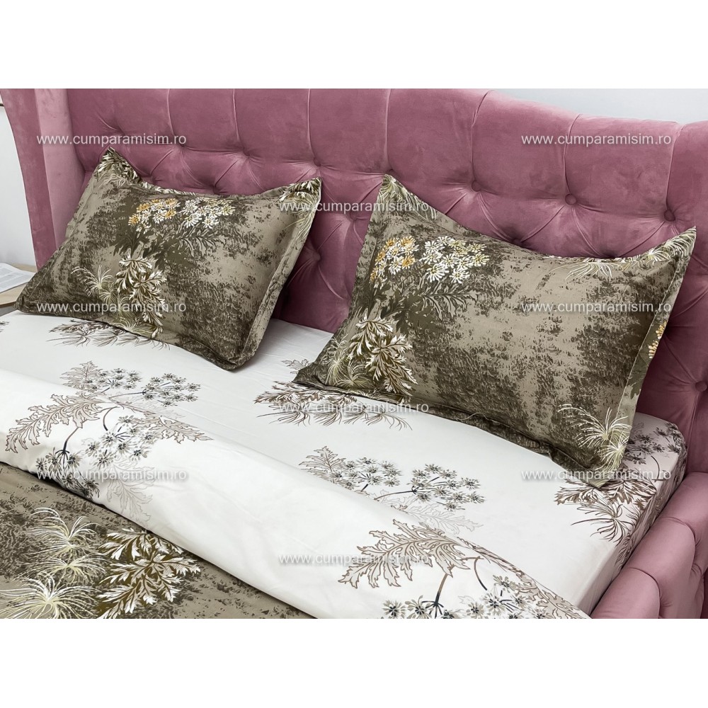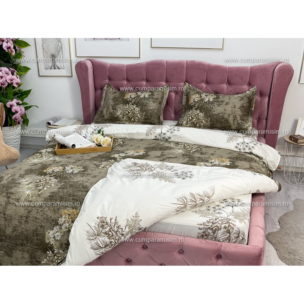 Lenjerie pat dublu, Pucioasa Romania, 4 piese, Bumbac Satinat Superior, Maro, flori, Ralex Pucioasa, cod produs: RXE110
