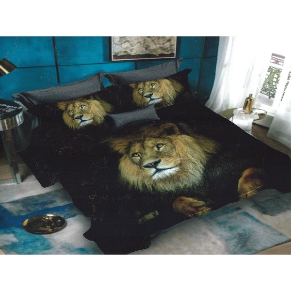 Lenjerie pat dublu, Ralex Pucioasa, 6 piese, Bumbac Finet, imprimeu 3D, IDENTIC CU POZA, Negru, leu, cod produs: RXF361