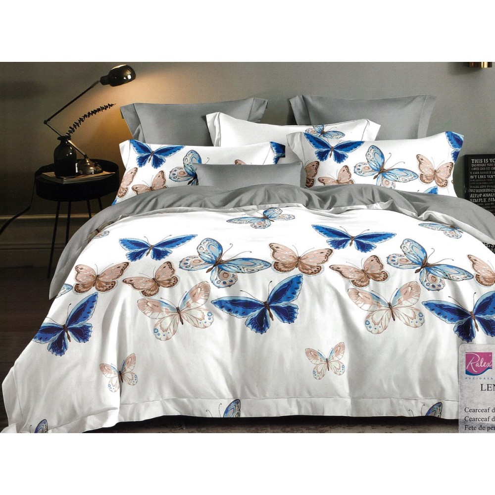Lenjerie pat dublu, Ralex Pucioasa, Bumbac Finet, 6 piese, Alb-Gri, fluturi, cod produs: RXF218