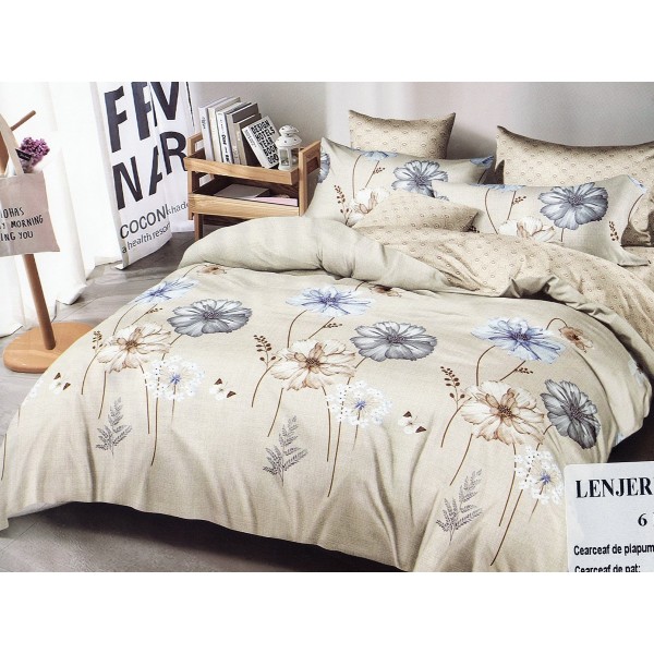 Lenjerie pat dublu, Ralex Pucioasa, Finet, 6 piese, Bej, flori, cod produs: RXF190