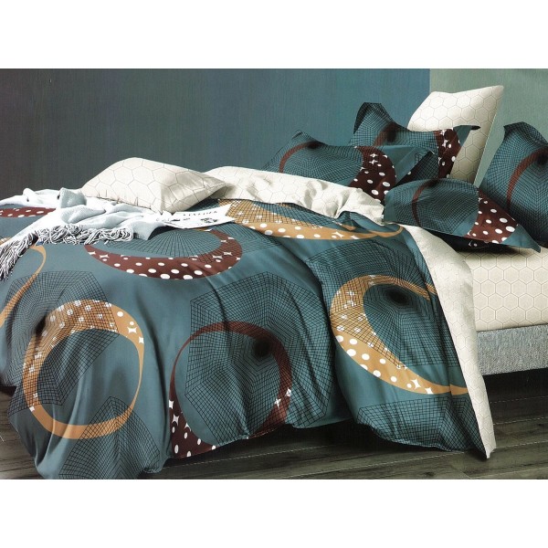 Lenjerie pat dublu, Ralex Pucioasa, Finet, 6 piese, Gri-Crem, cercuri, cod produs: RXF212