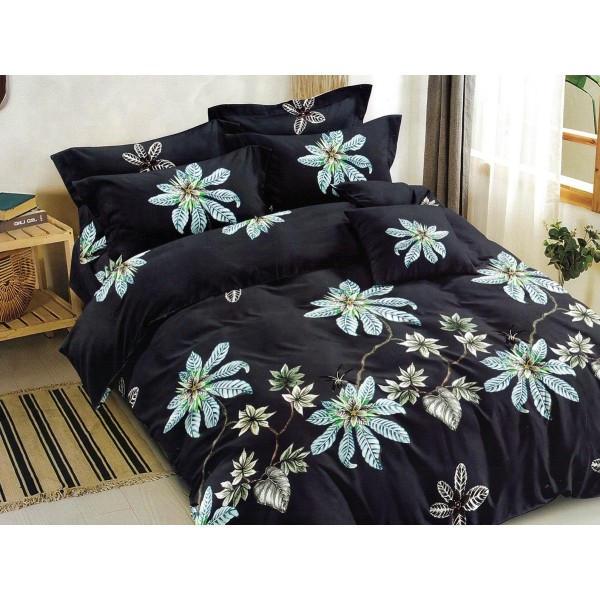 Lenjerie pat dublu, Ralex Pucioasa, Finet, 6 piese, Negru, flori, cod produs: RXF205