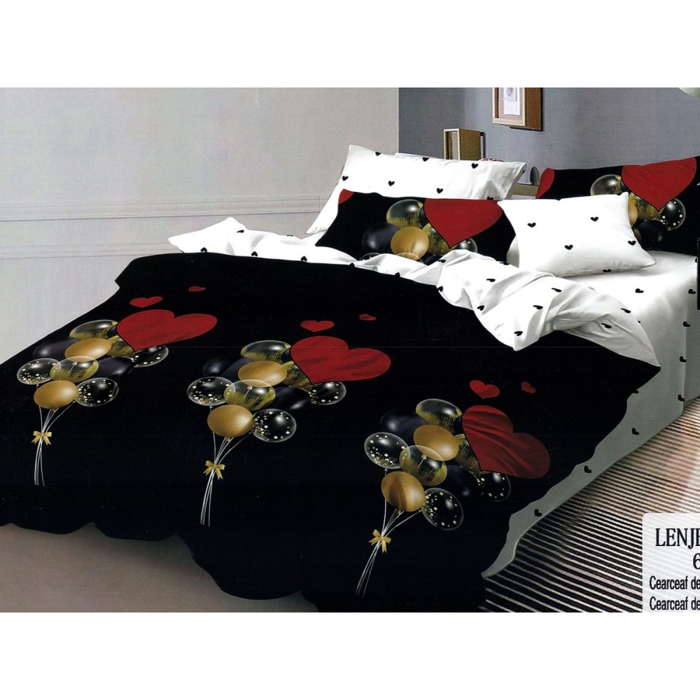 Lenjerie pat dublu, Ralex Pucioasa, Finet, 6 piese, Negru-Alb, baloane, inimioare, cod produs: RXF188