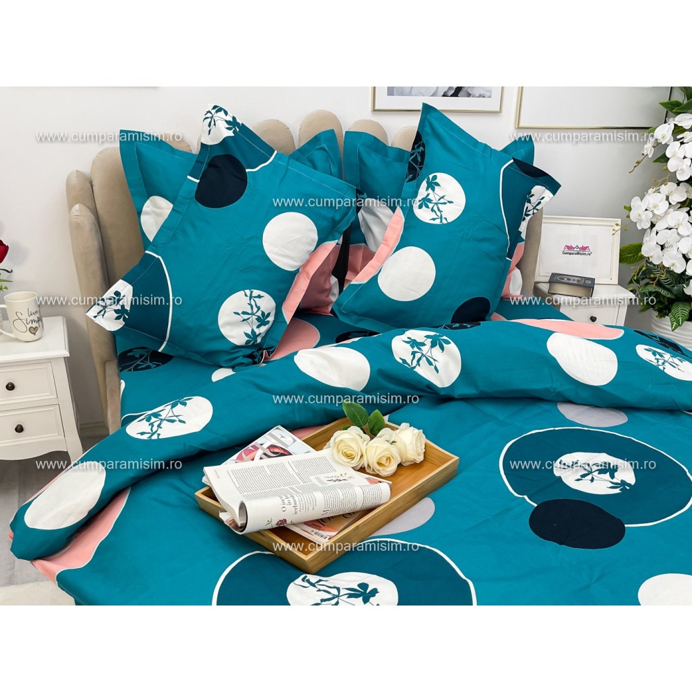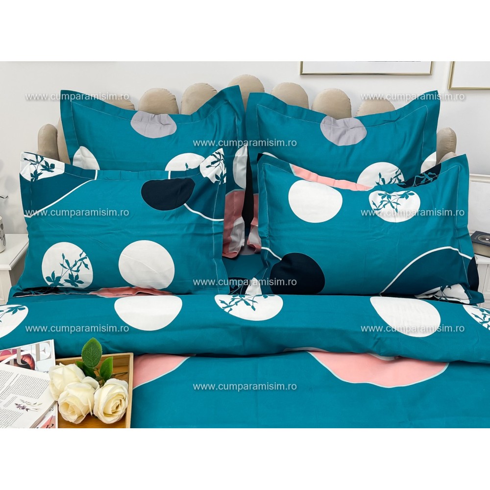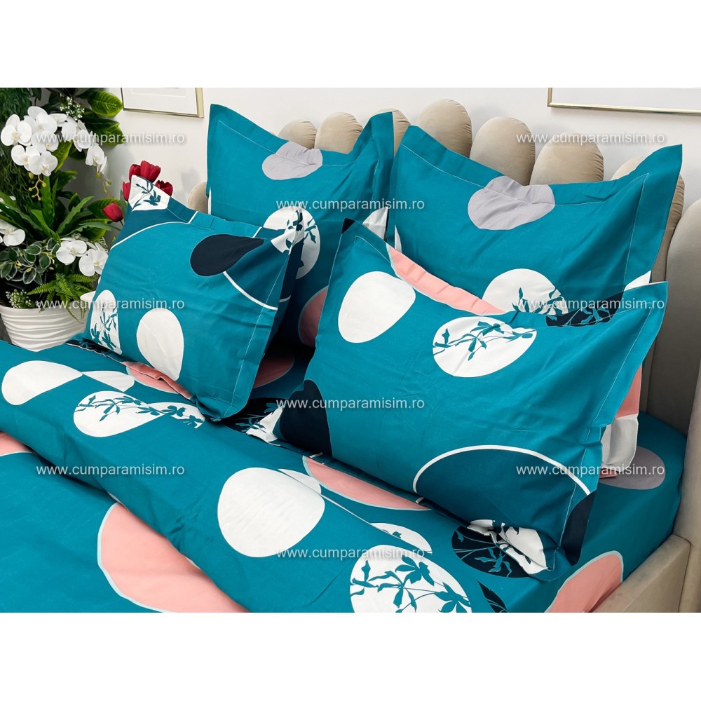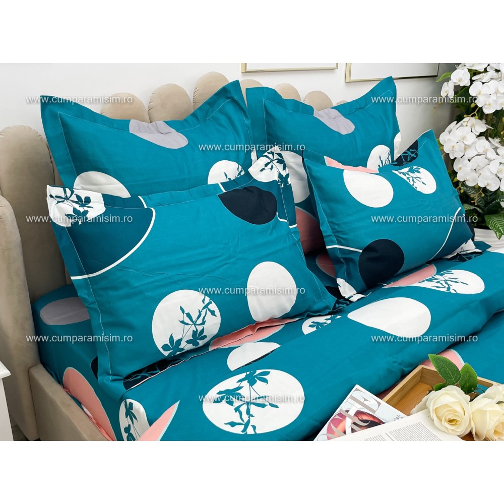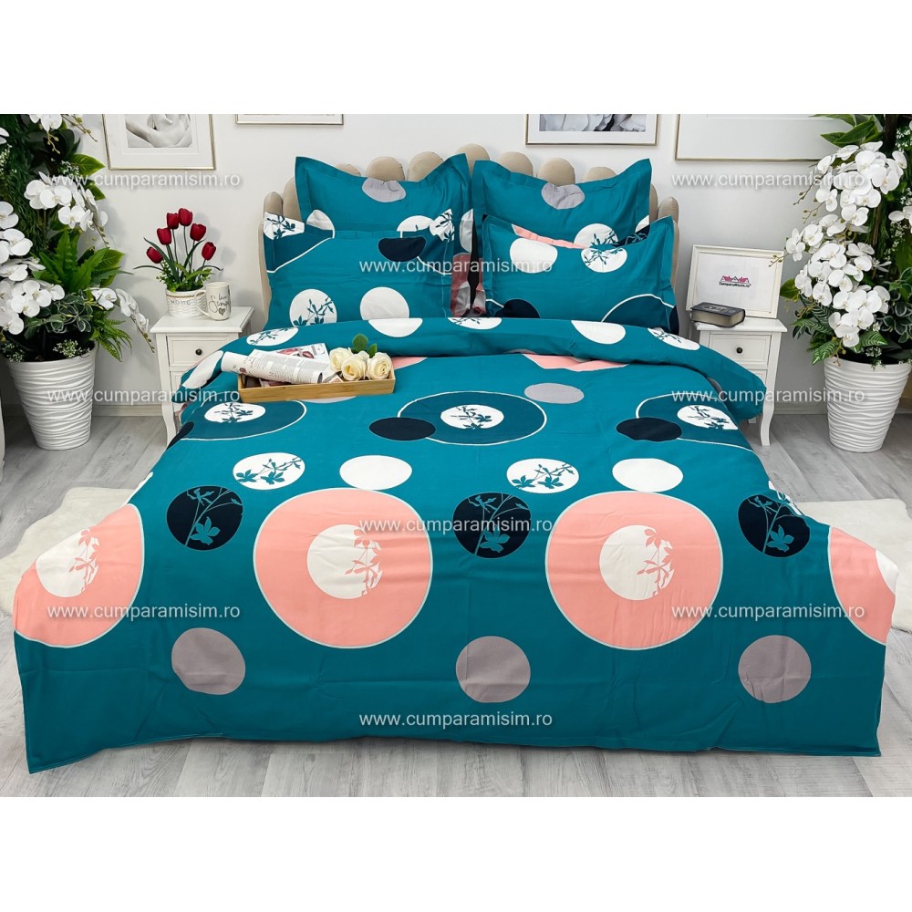 Lenjerie pat dublu, Ralex Pucioasa, Finet, 6 piese, Verde, cercuri, buline, frunze, cod produs: RXF216