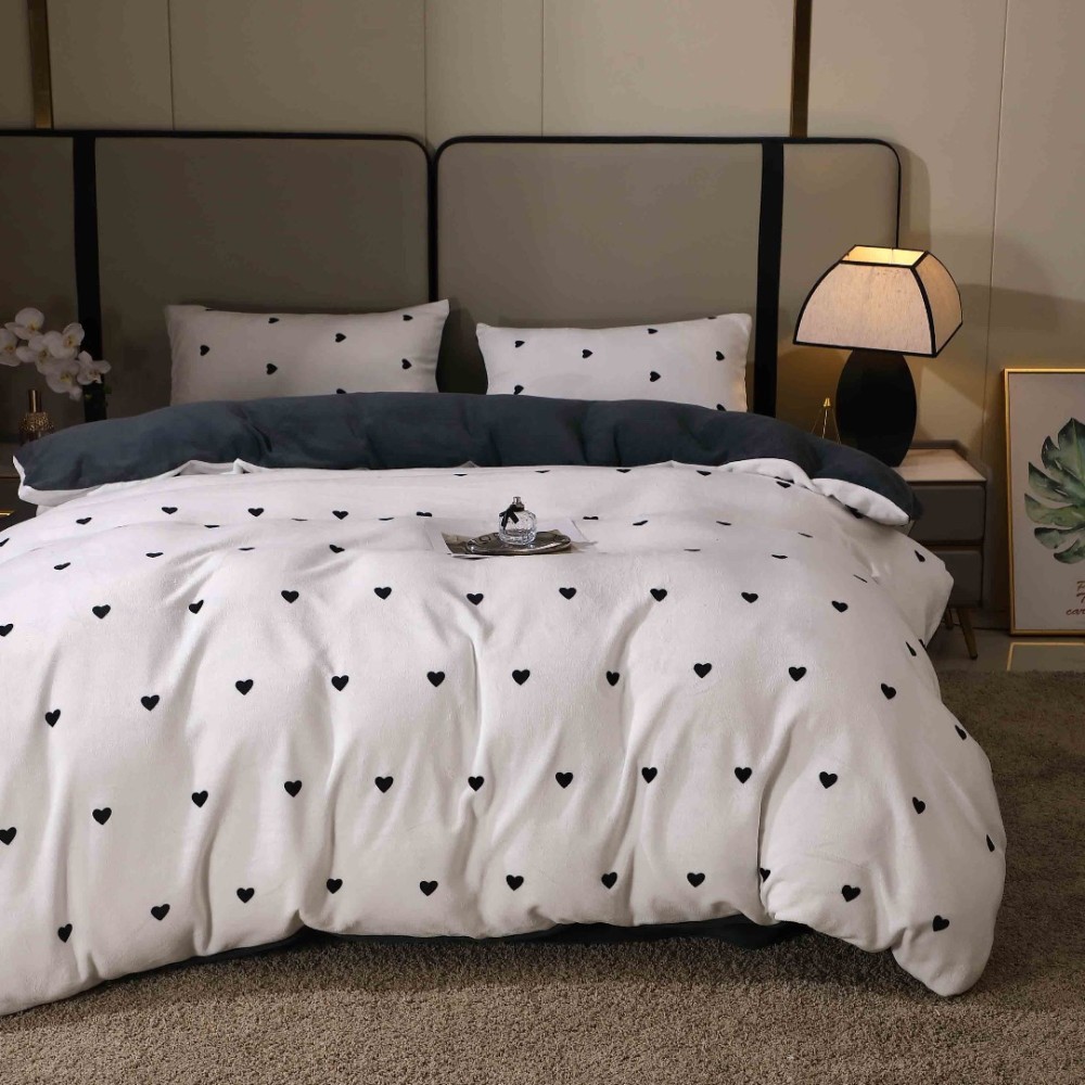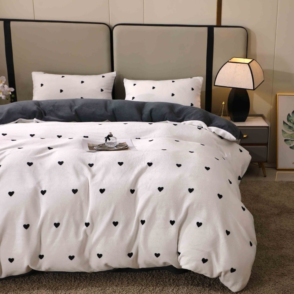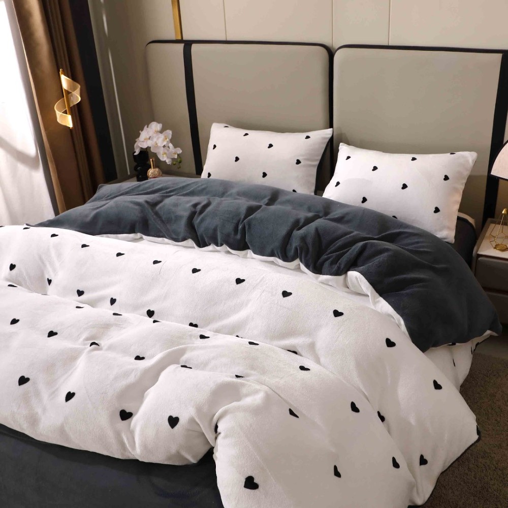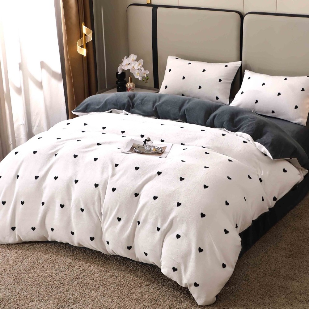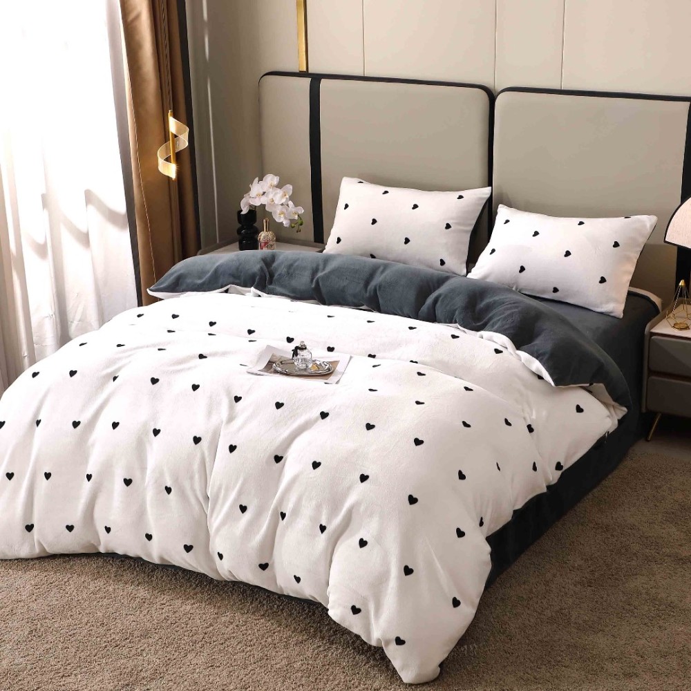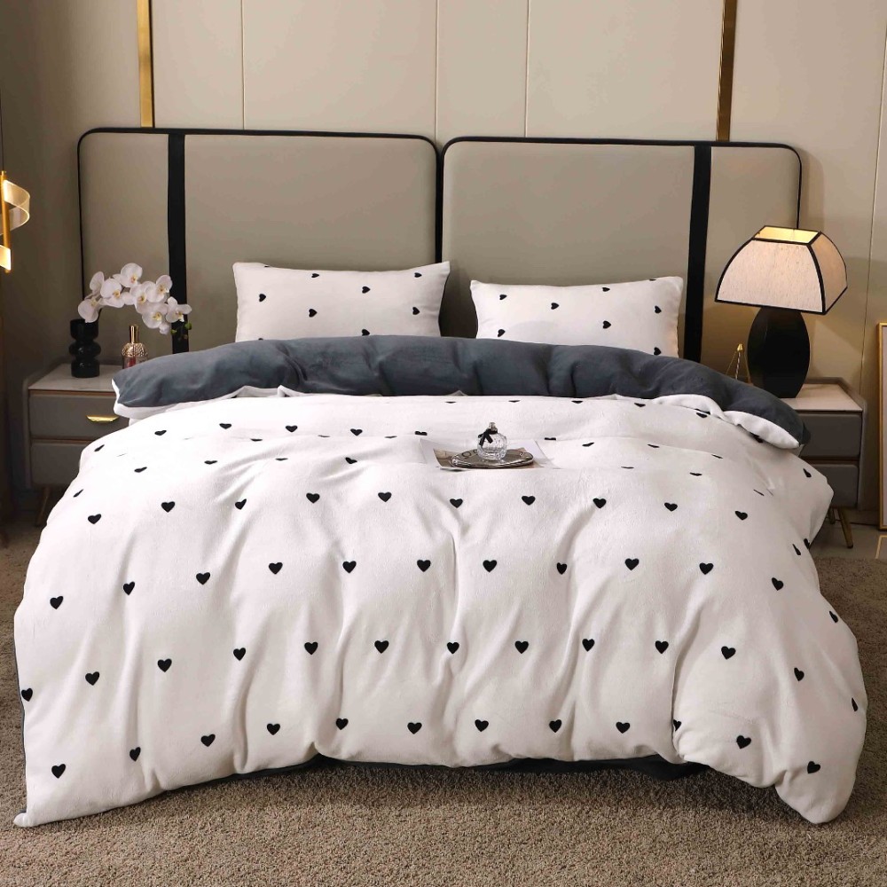Lenjerie pat dublu, Super Pufoasa COCOLINO, 4 piese, Alb, Gri, Inimioare, cod produs: BCC-LC411