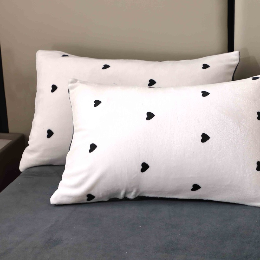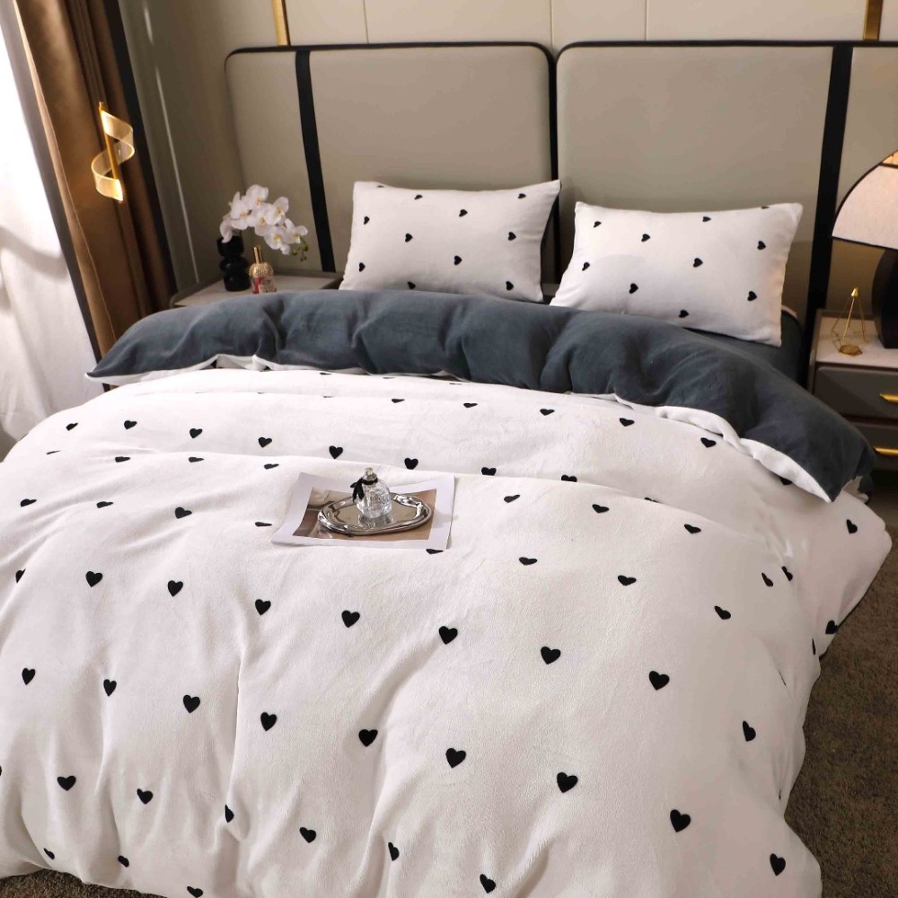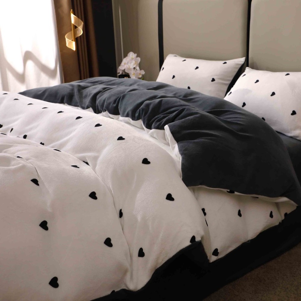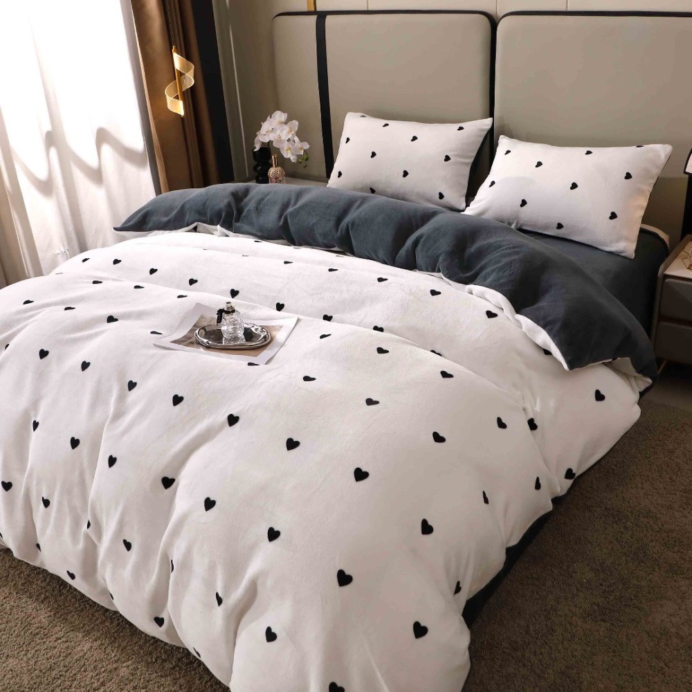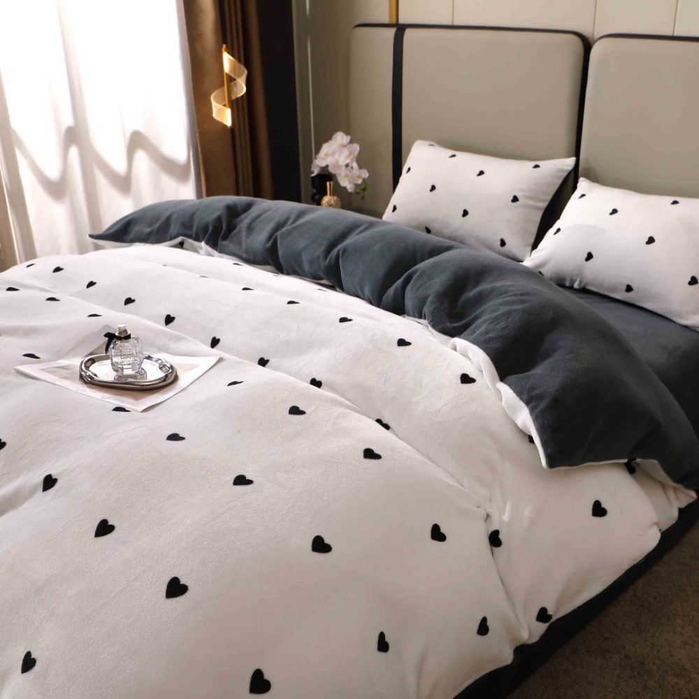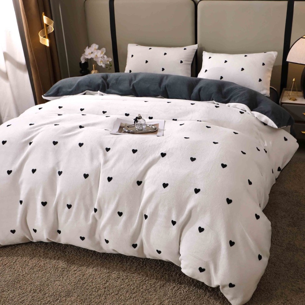 Lenjerie pat dublu, Super Pufoasa COCOLINO, 4 piese, Alb, Gri, Inimioare, cod produs: BCC-LC411