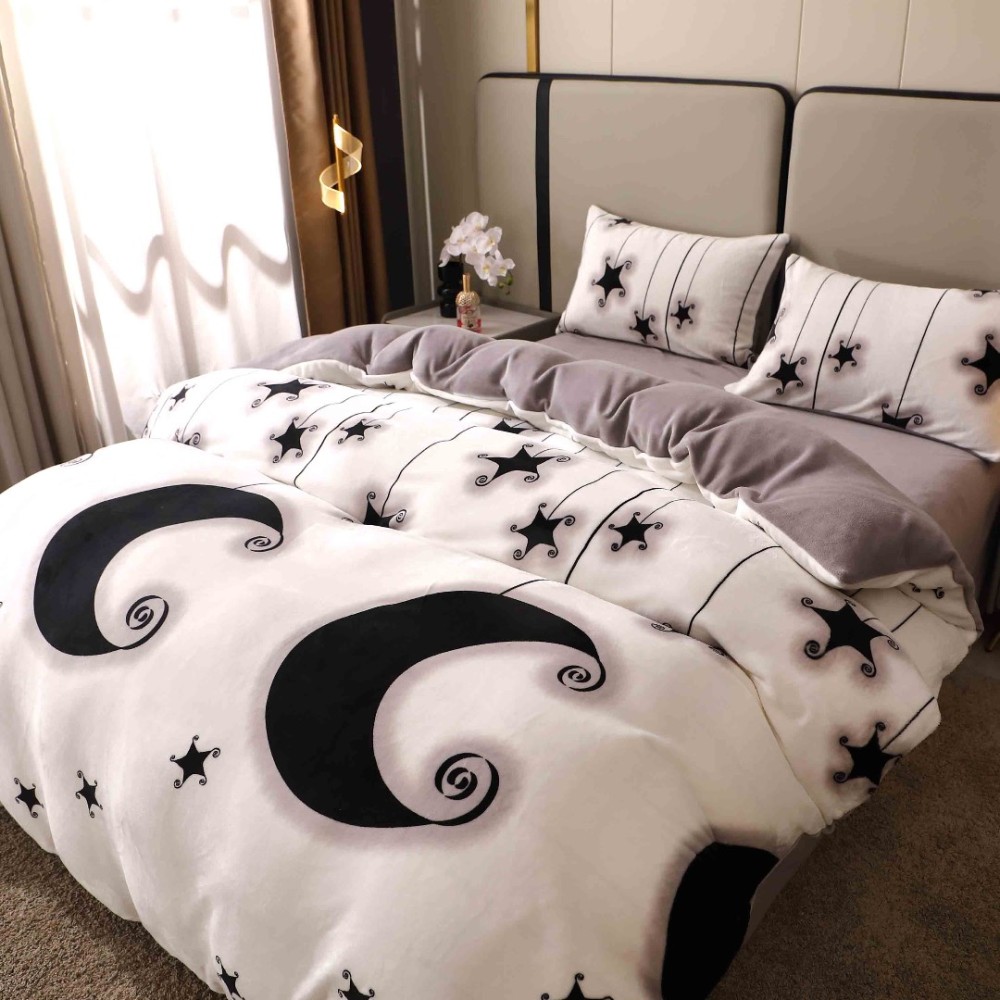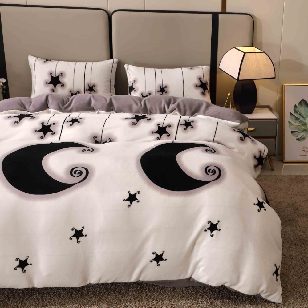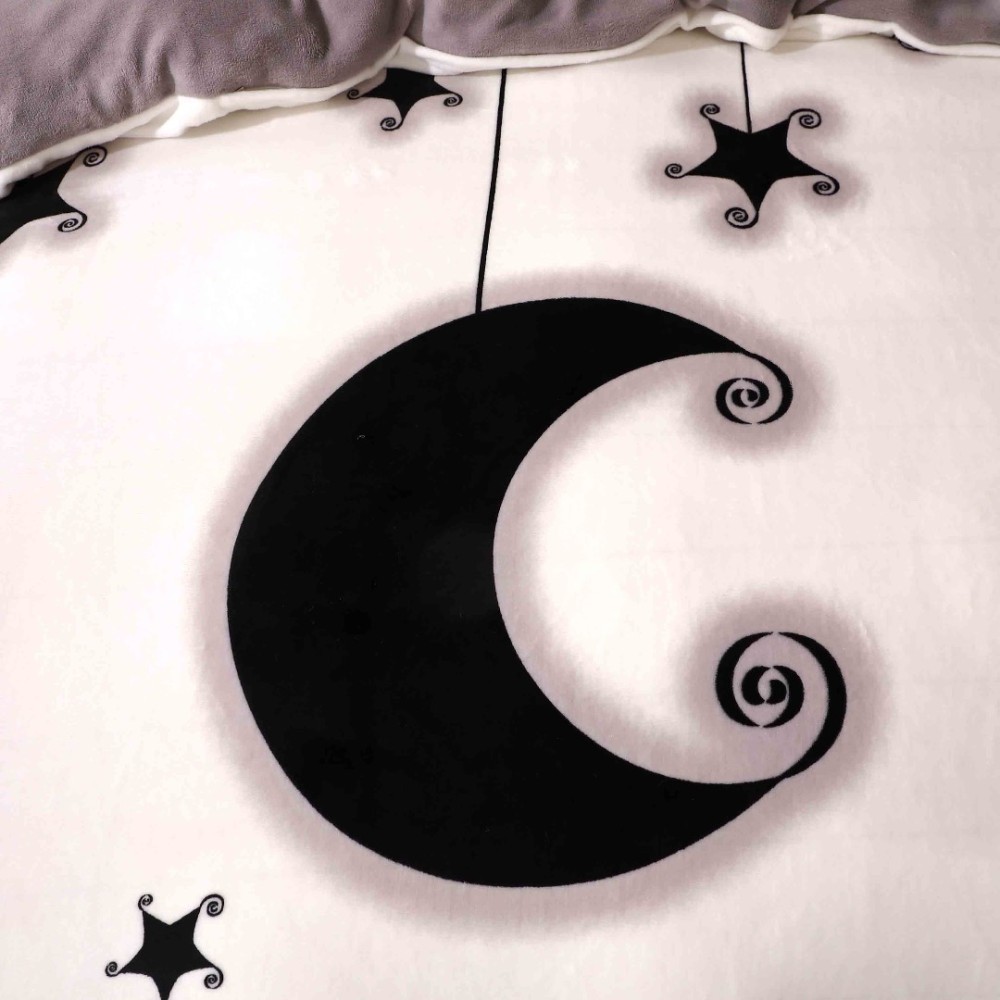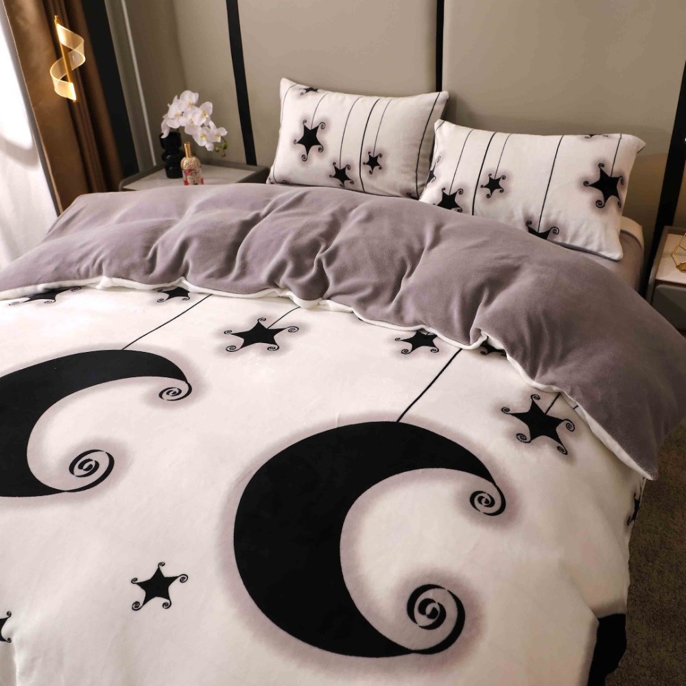 Lenjerie pat dublu, Super Pufoasa COCOLINO, 4 piese, Alb, Negru, Stele si Luna, cod produs: BCC-LC401