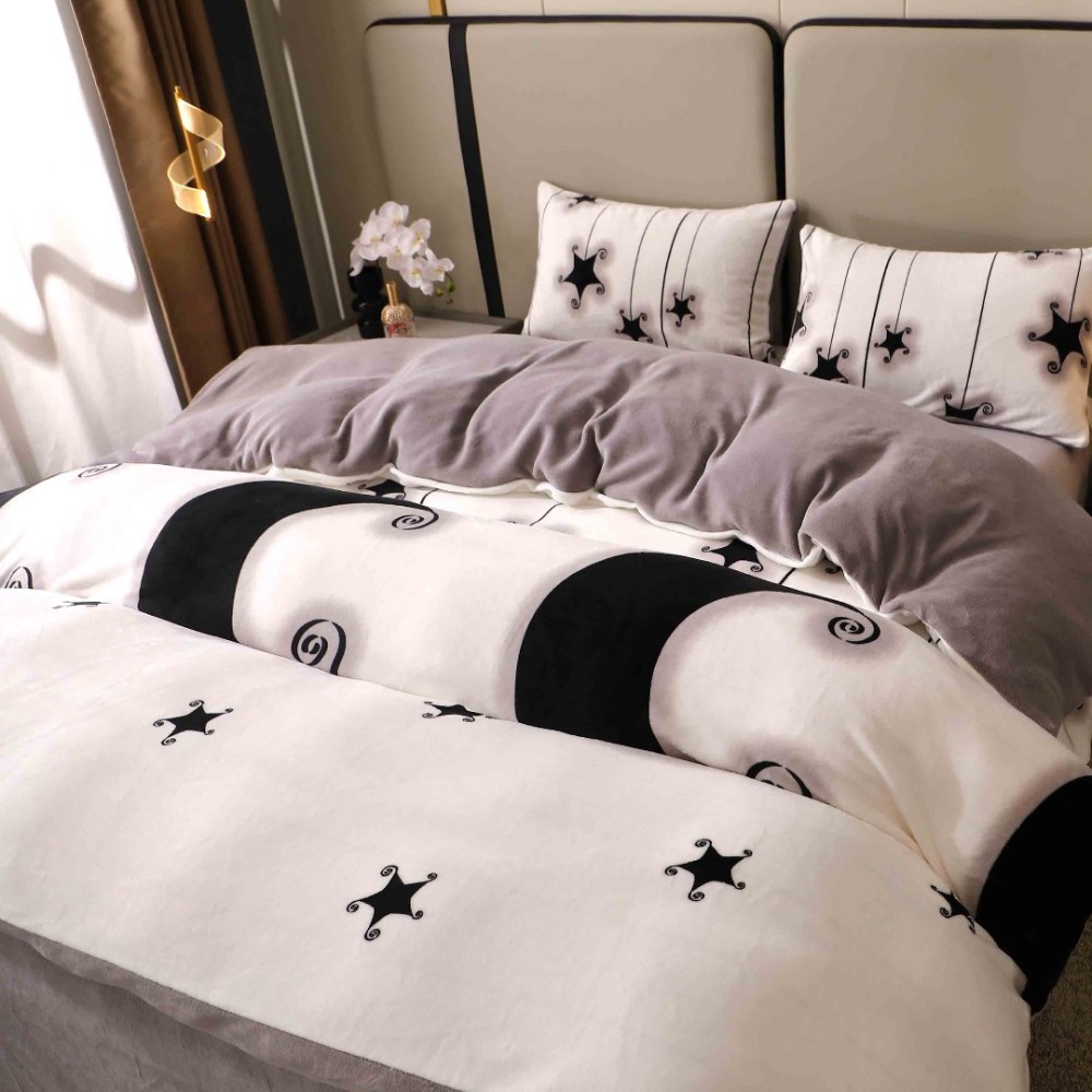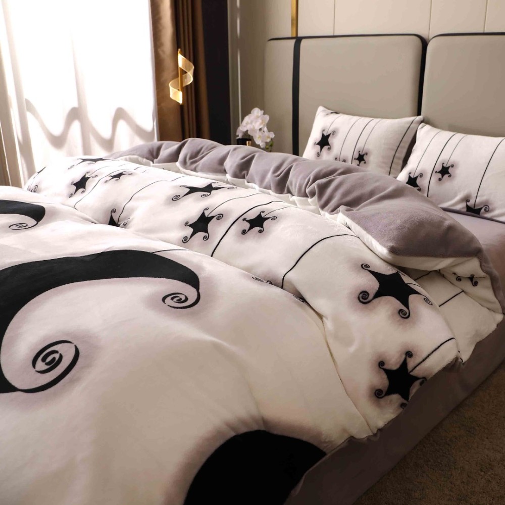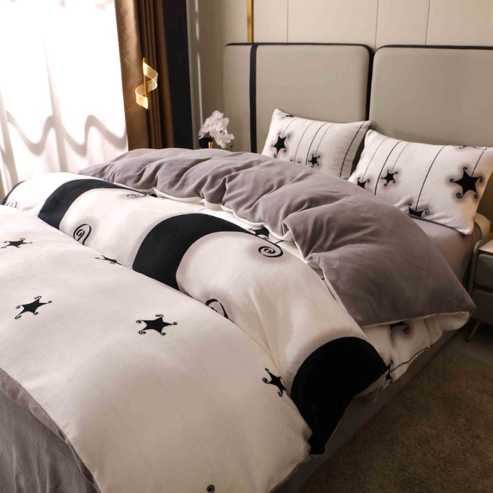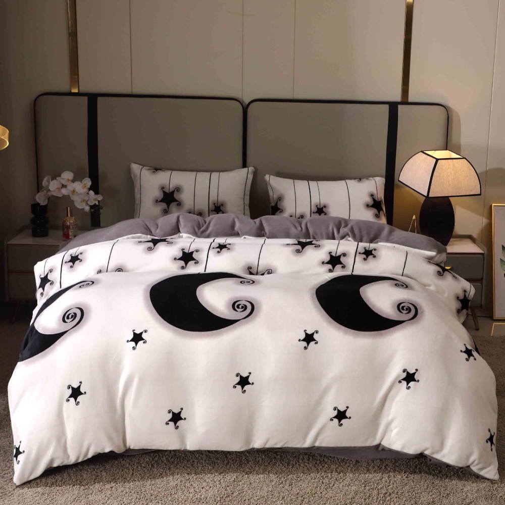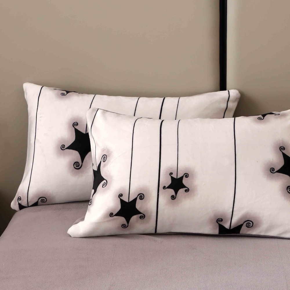 Lenjerie pat dublu, Super Pufoasa COCOLINO, 4 piese, Alb, Negru, Stele si Luna, cod produs: BCC-LC401