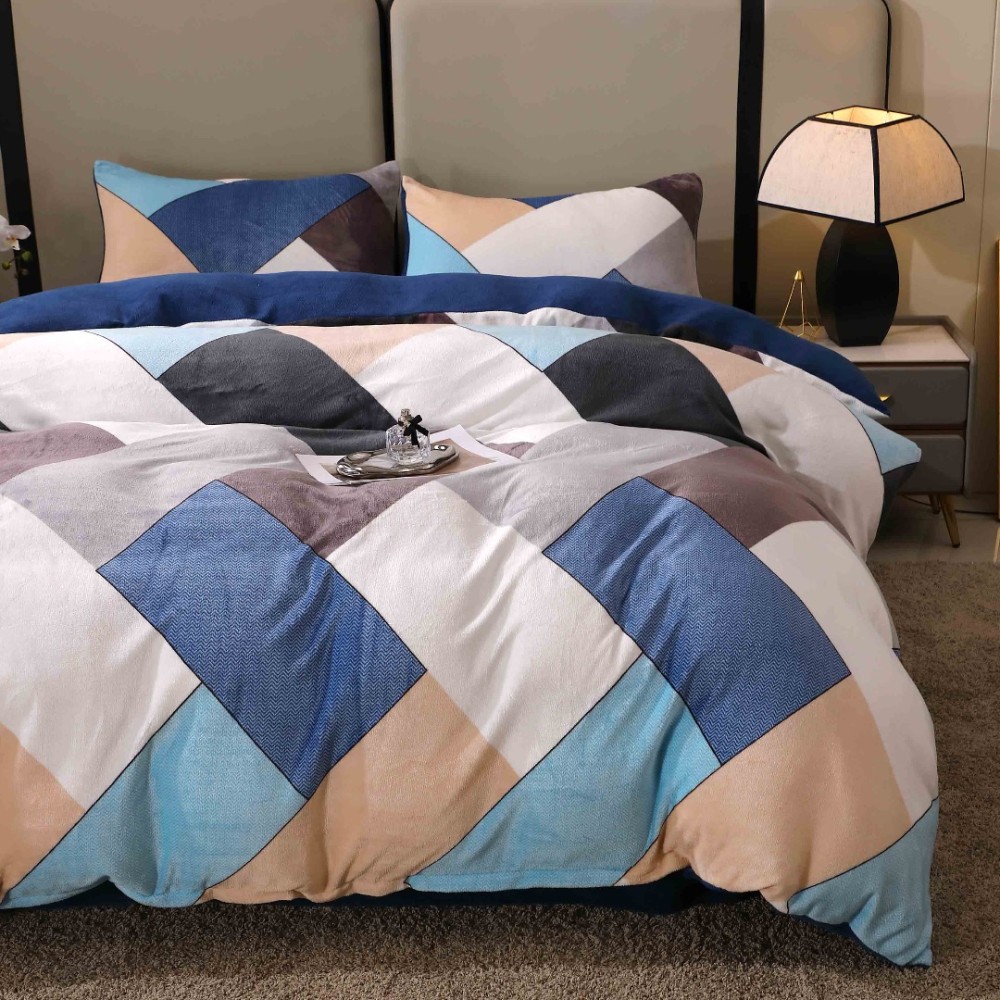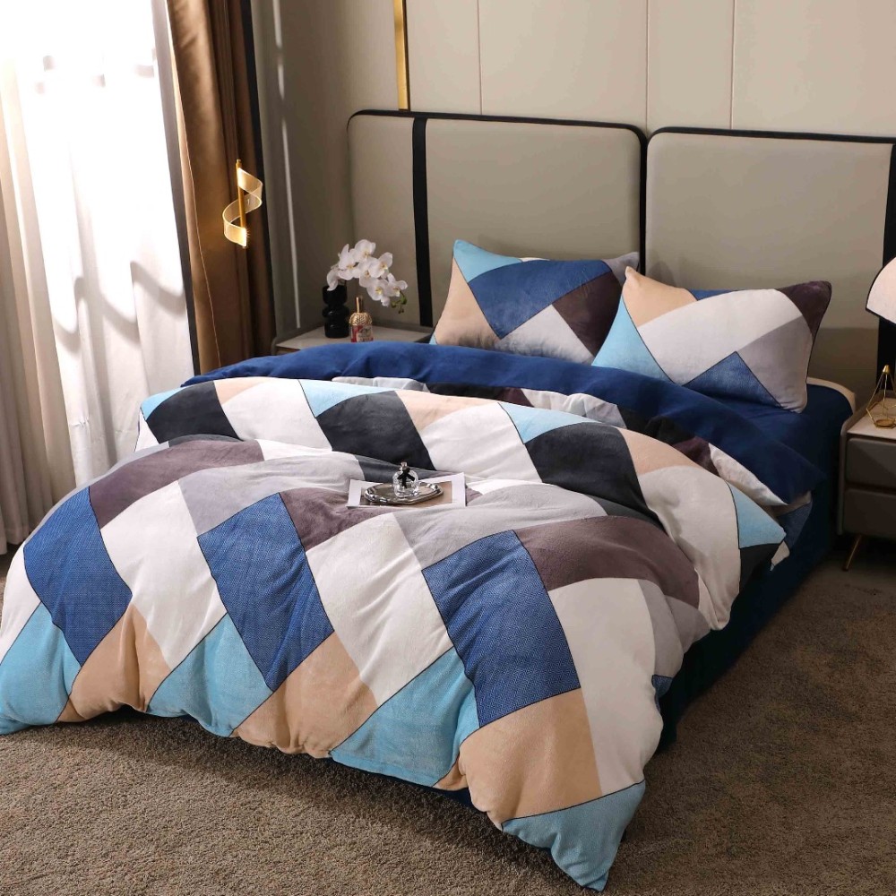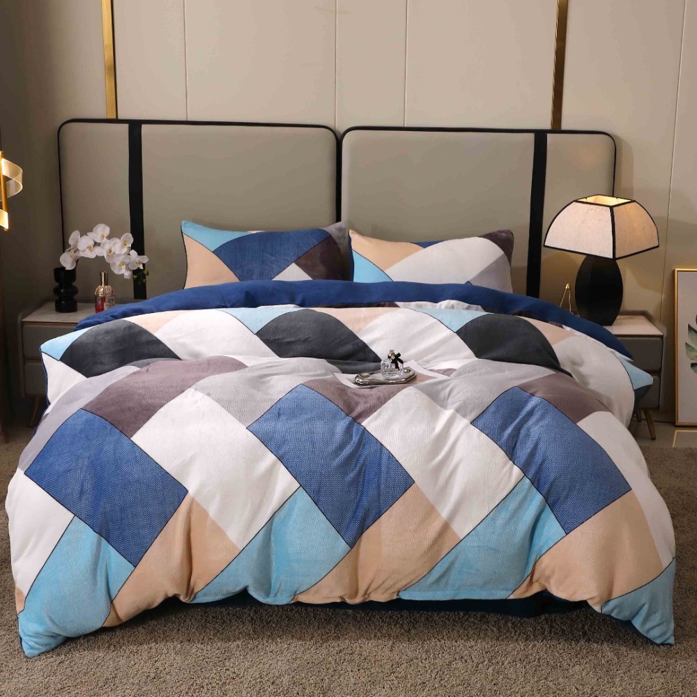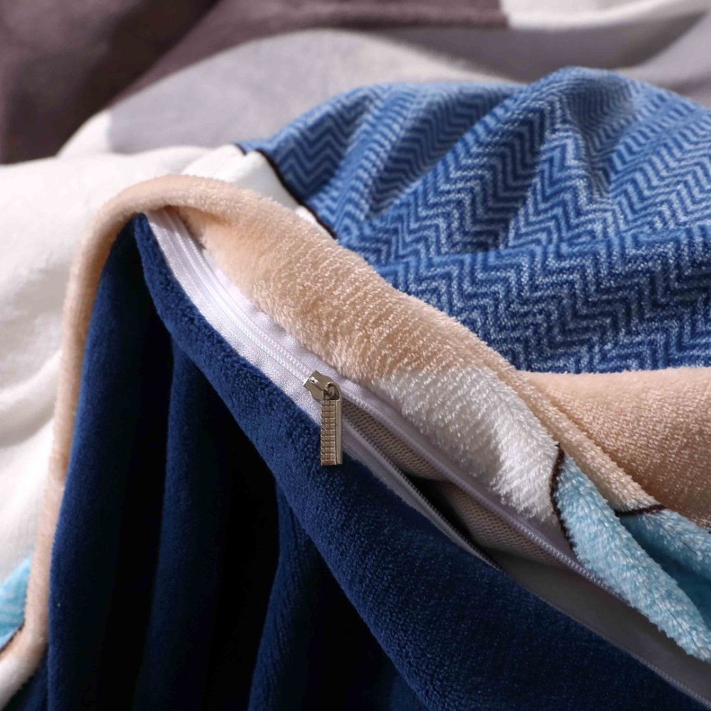 Lenjerie pat dublu, Super Pufoasa COCOLINO, 4 piese, Albastru, Bej, Gri, Forme Geometrice, cod produs: BCC-LC407