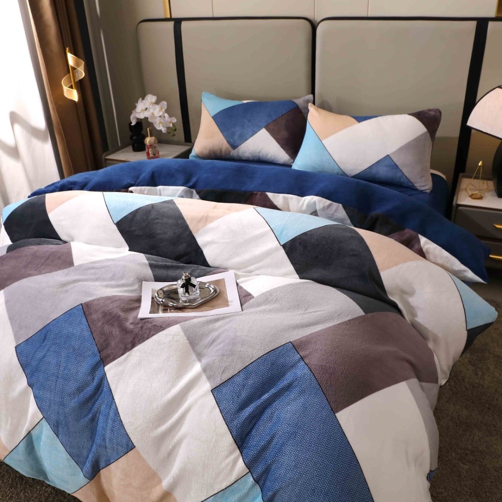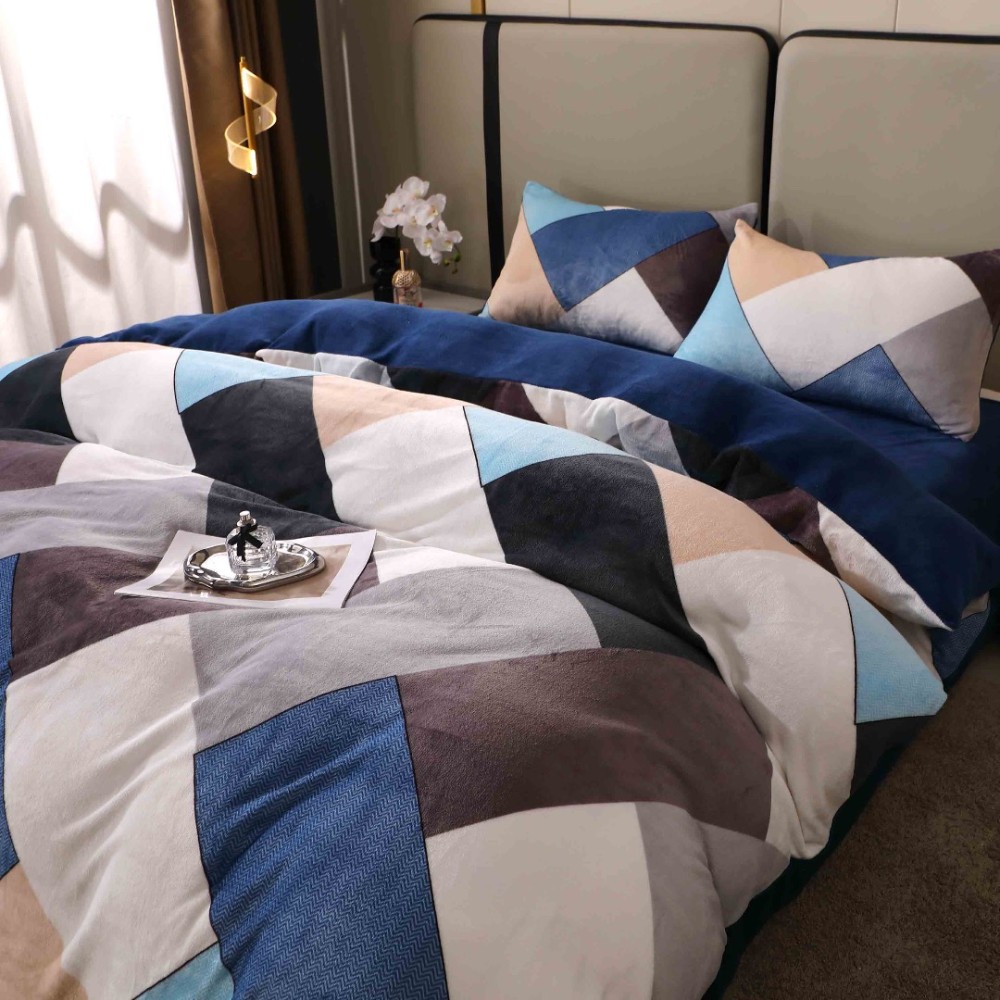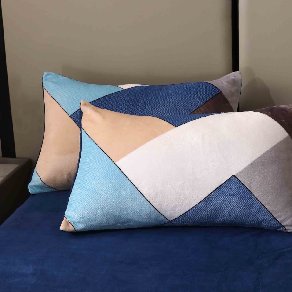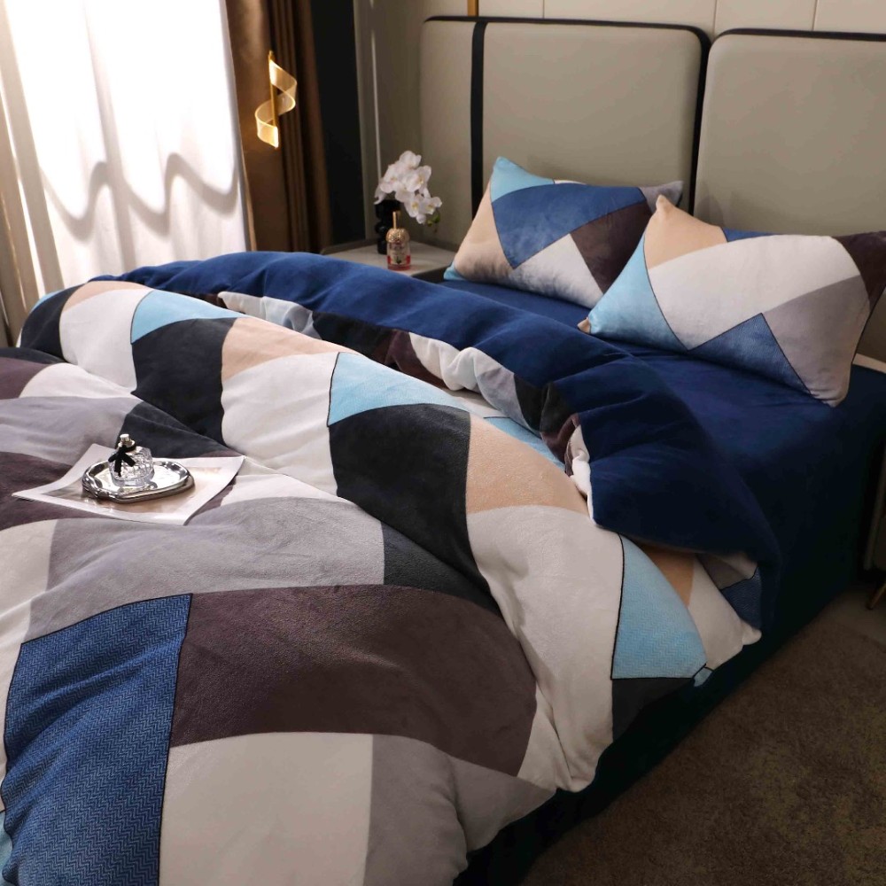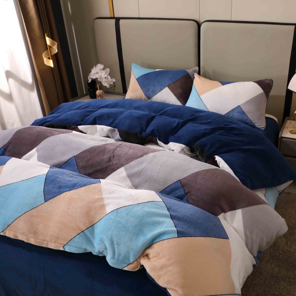Lenjerie pat dublu, Super Pufoasa COCOLINO, 4 piese, Albastru, Bej, Gri, Forme Geometrice, cod produs: BCC-LC407