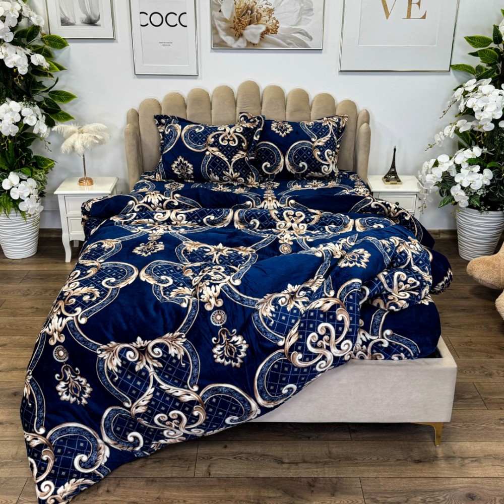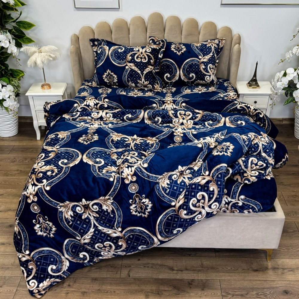 Lenjerie pat dublu, Super Pufoasa COCOLINO, 4 piese, Albastru, Bej, model elegant, cod produs: LEC16