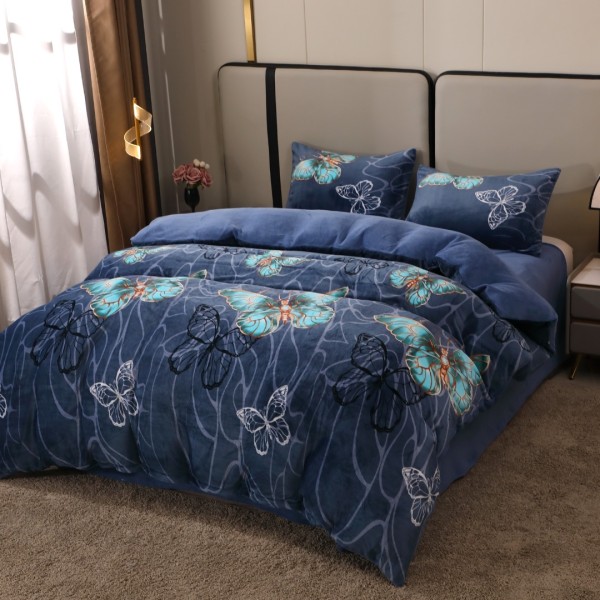 Lenjerie pat dublu, Super Pufoasa COCOLINO, 4 piese, Albastru, fluturi, cod produs: BCC-LC214