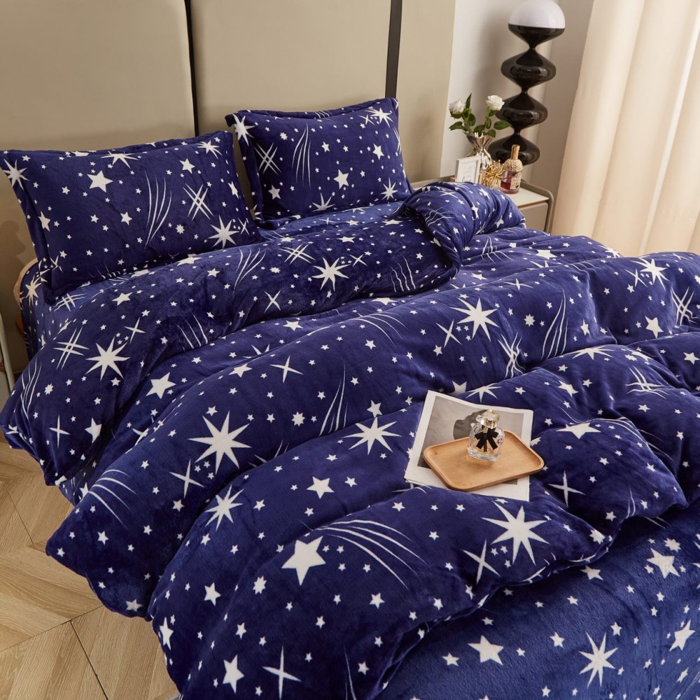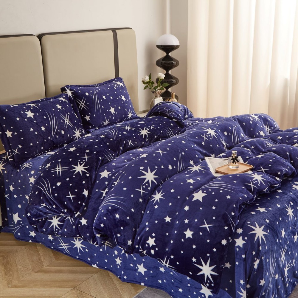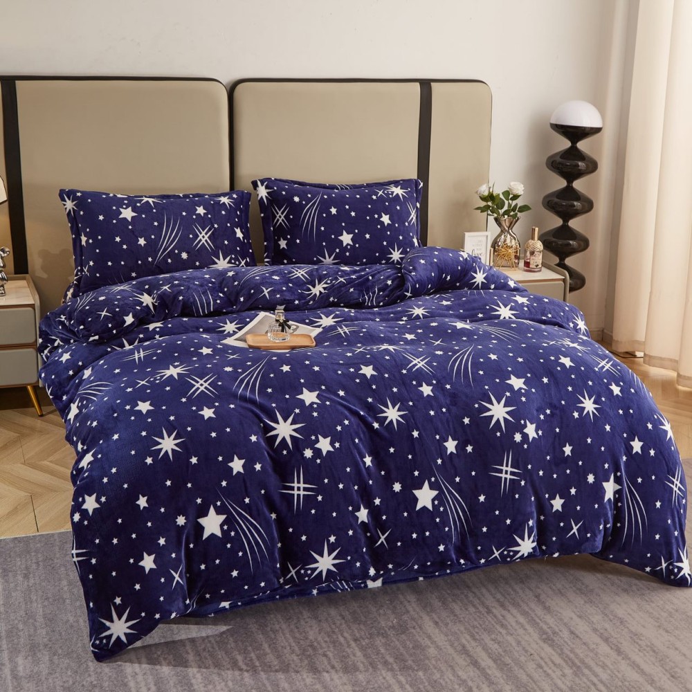Lenjerie pat dublu, Super Pufoasa COCOLINO, 4 piese, Albastru, stelute, cod produs: BCC-LC107