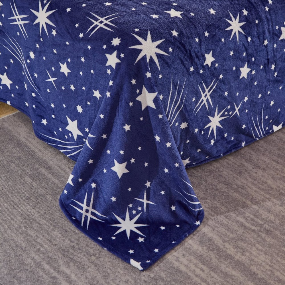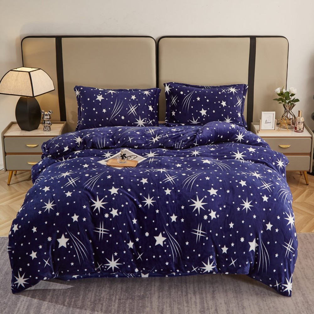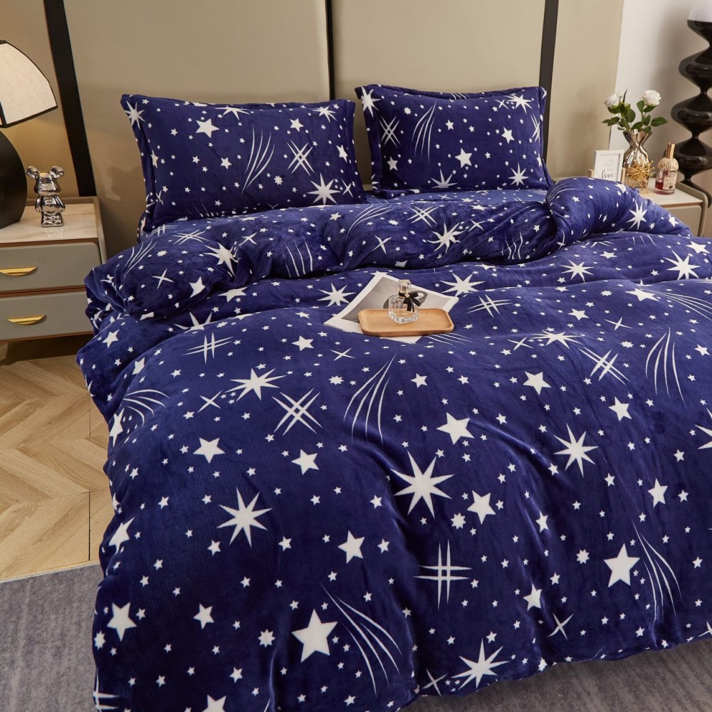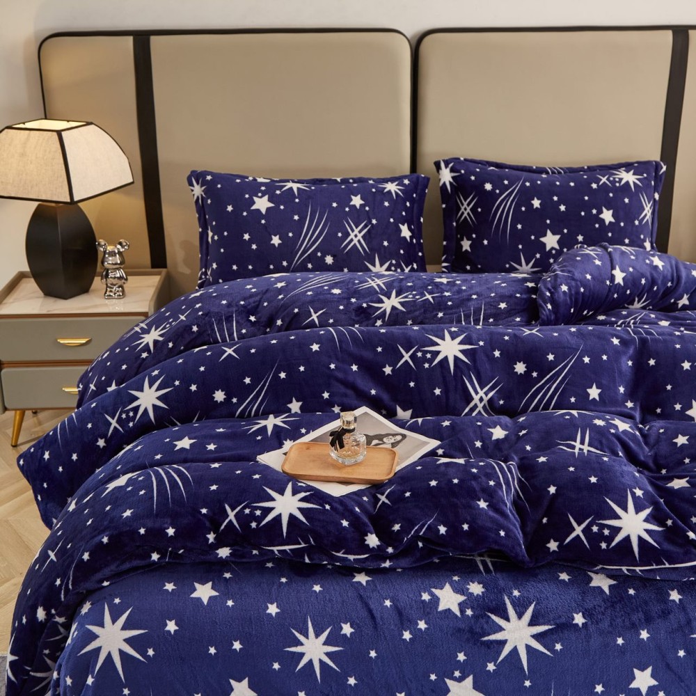 Lenjerie pat dublu, Super Pufoasa COCOLINO, 4 piese, Albastru, stelute, cod produs: BCC-LC107