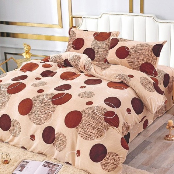 Lenjerie pat dublu, Super Pufoasa COCOLINO, 4 piese, Bej, Maro, forme geometrice, cercuri, CumparaMisim, cod produs: CSA-CC05