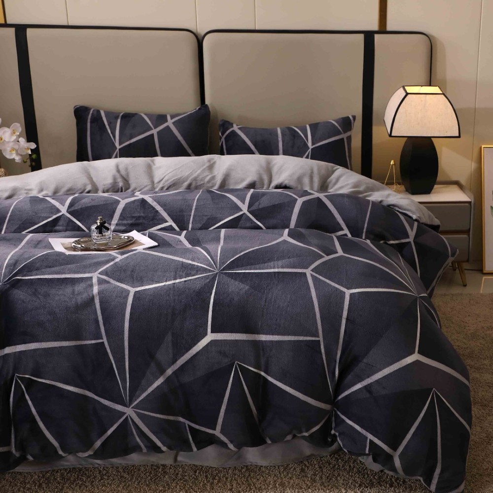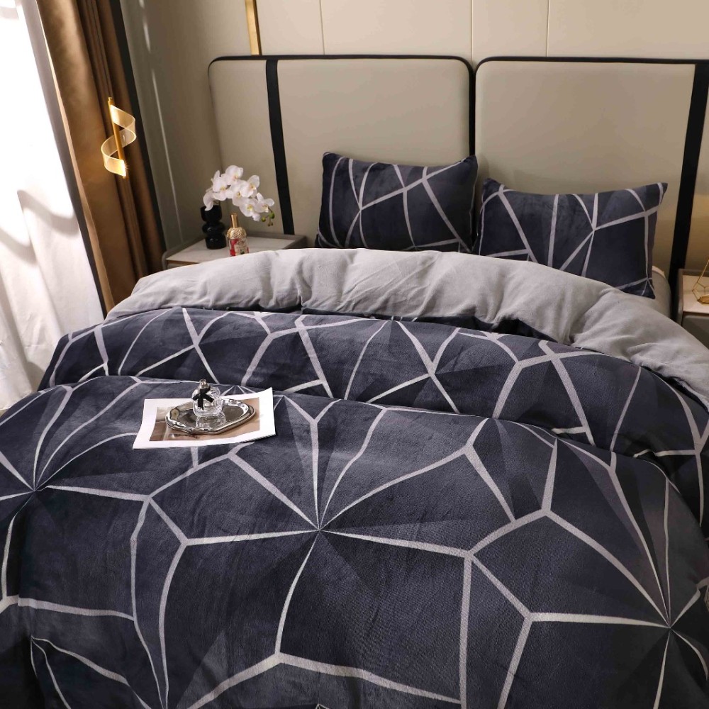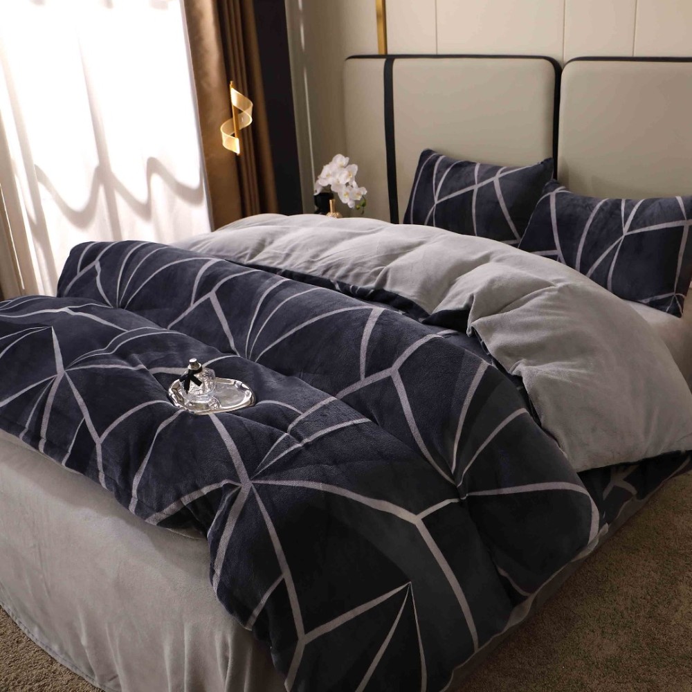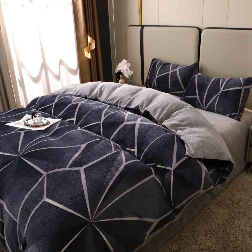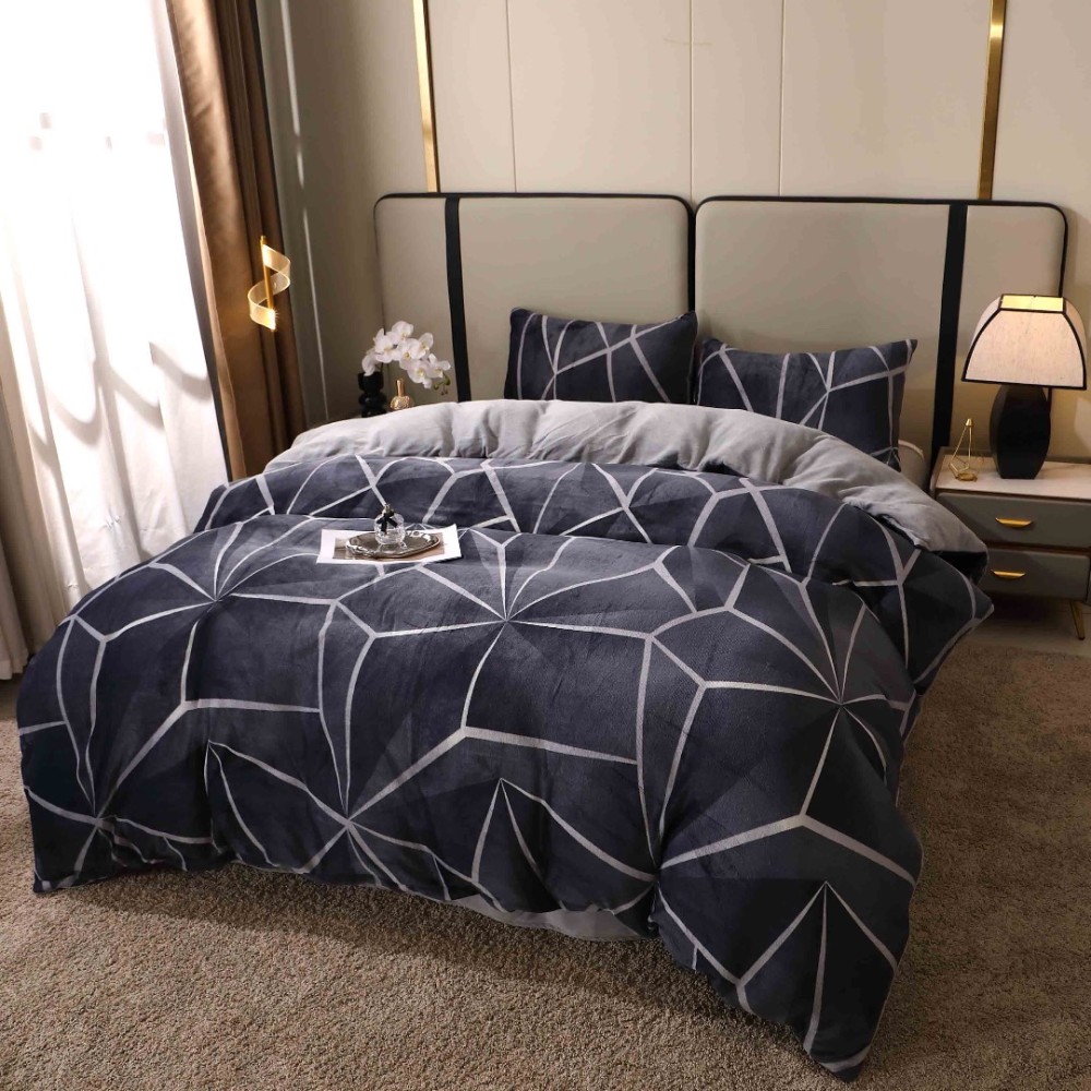 Lenjerie pat dublu, Super Pufoasa COCOLINO, 4 piese, Bleumarin, Gri, Forme Geometrice, cod produs: BCC-LC402