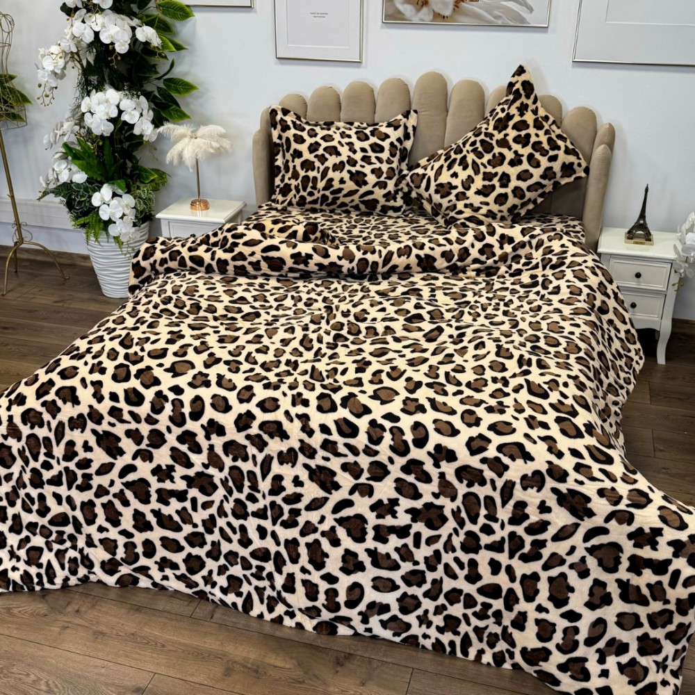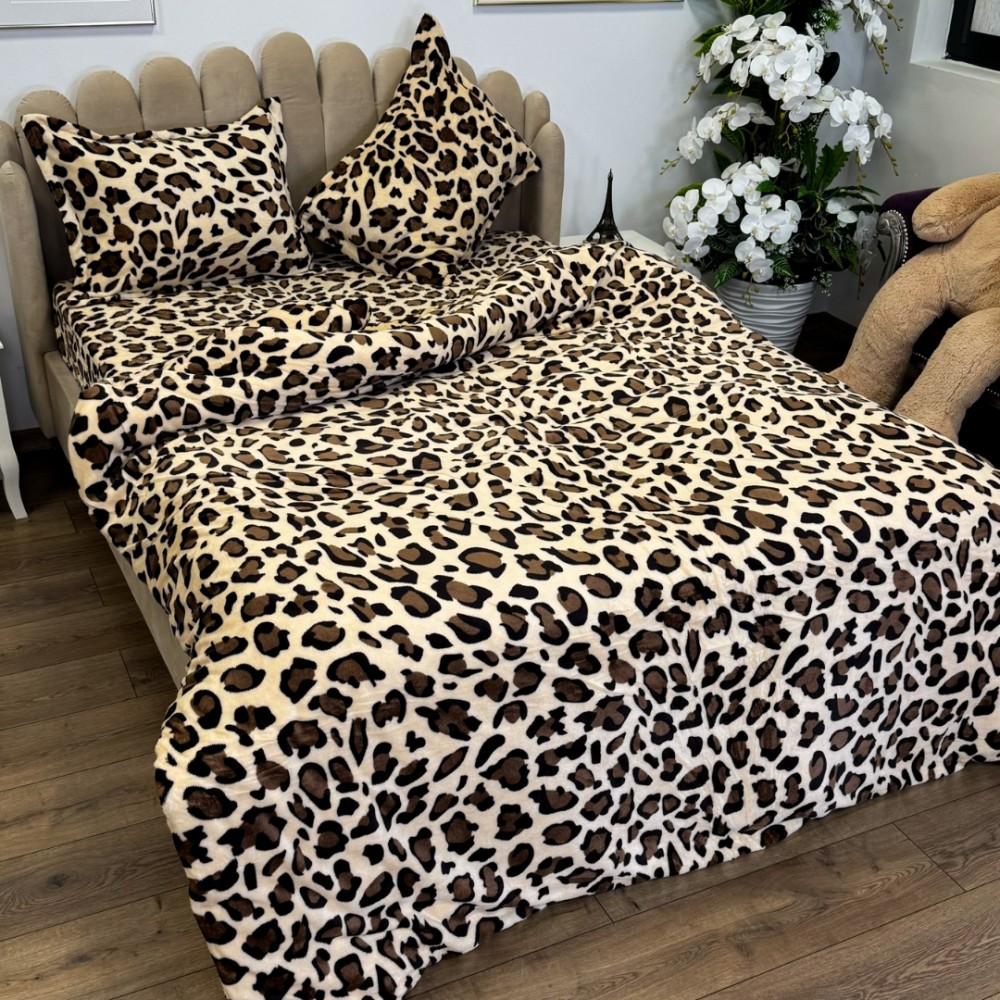 Lenjerie pat dublu, Super Pufoasa COCOLINO, 4 piese, cu ELASTIC, Bej, Maro, animal print, cod produs: LEC111