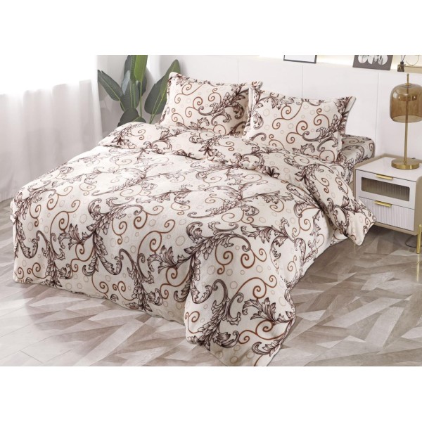 Lenjerie pat dublu, Super Pufoasa COCOLINO, 4 piese, cu ELASTIC, Grej, Maro, model tribal, cod produs: LEC102