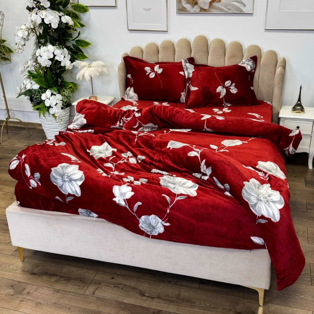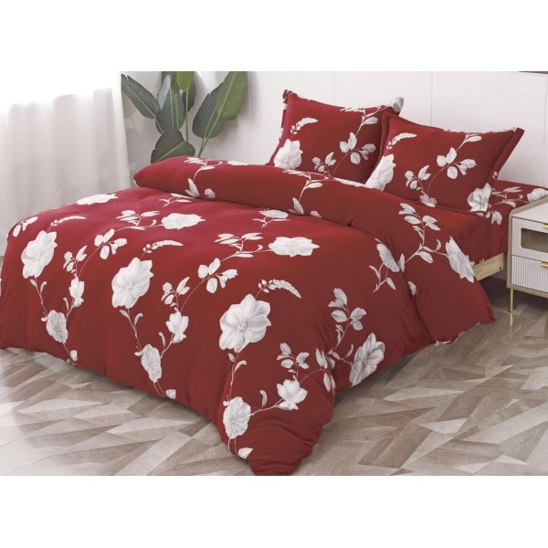 Lenjerie pat dublu, Super Pufoasa COCOLINO, 4 piese, cu ELASTIC, Grena, flori, cod produs: LEC106