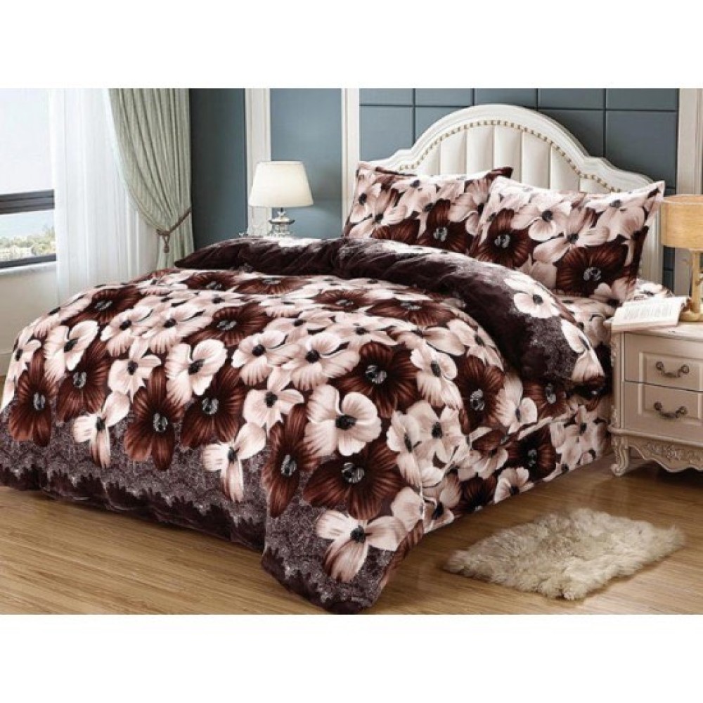 Lenjerie pat dublu, Super Pufoasa COCOLINO, 4 piese, cu ELASTIC, Gri, Bej, Maro, panseluțe, flori, CumparaMisim, cod produs: EST-CO108