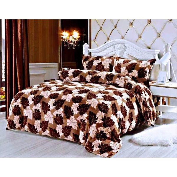 Lenjerie pat dublu, Super Pufoasa COCOLINO, 4 piese, cu ELASTIC, Maro, frunze, CumparaMisim, cod produs: EST-CO111