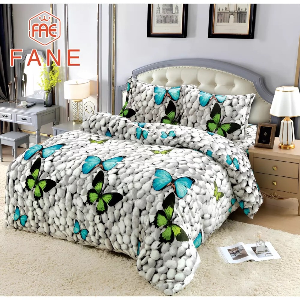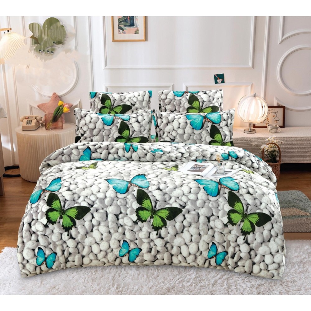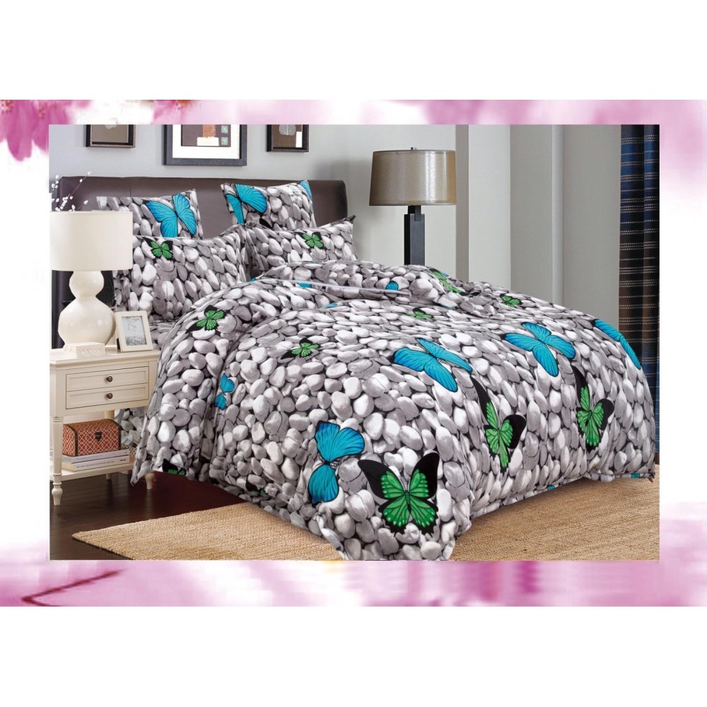 Lenjerie pat dublu, Super Pufoasa COCOLINO, 4 piese, Gri, fluturi, pietre, CumparaMisim, cod produs: EST-CO10