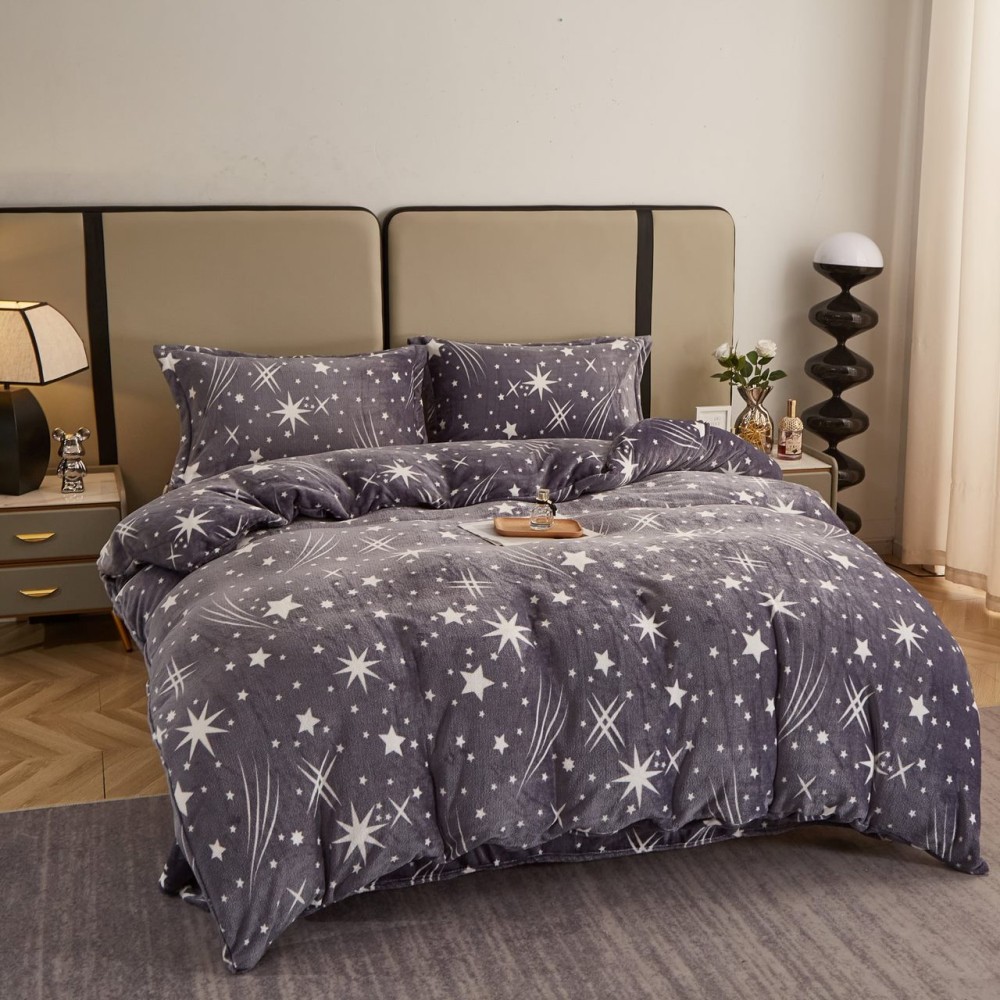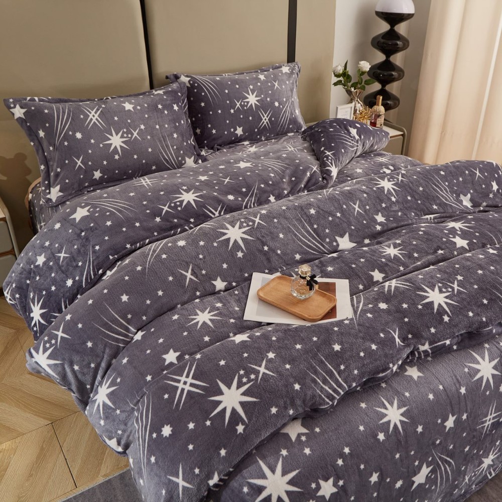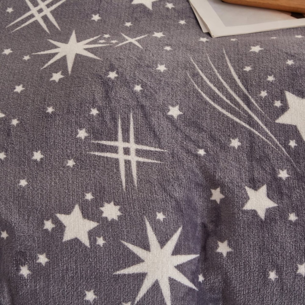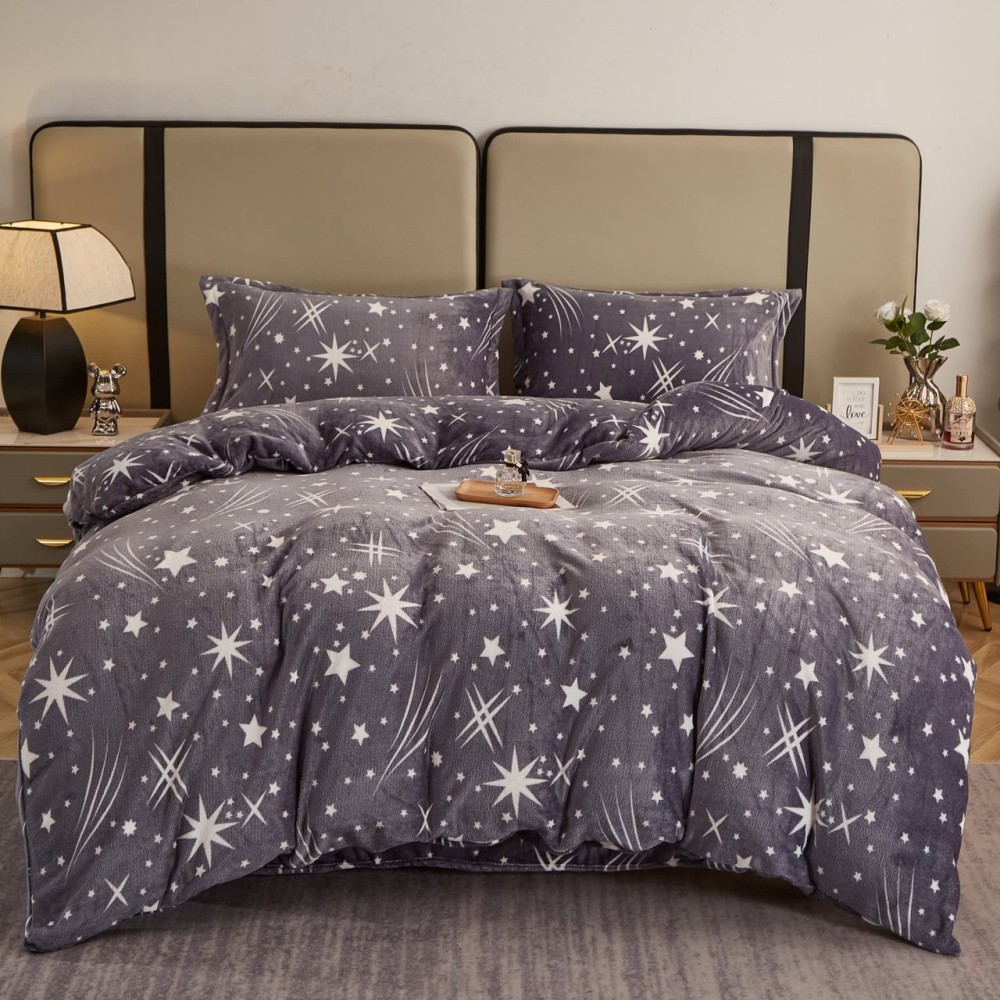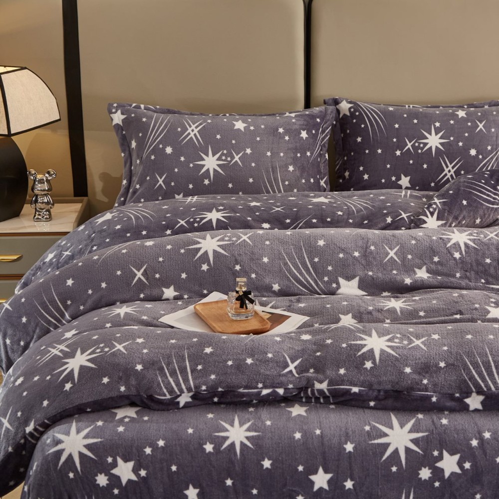 Lenjerie pat dublu, Super Pufoasa COCOLINO, 4 piese, Gri, stelute, cod produs: COB104