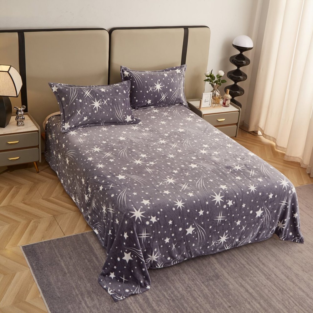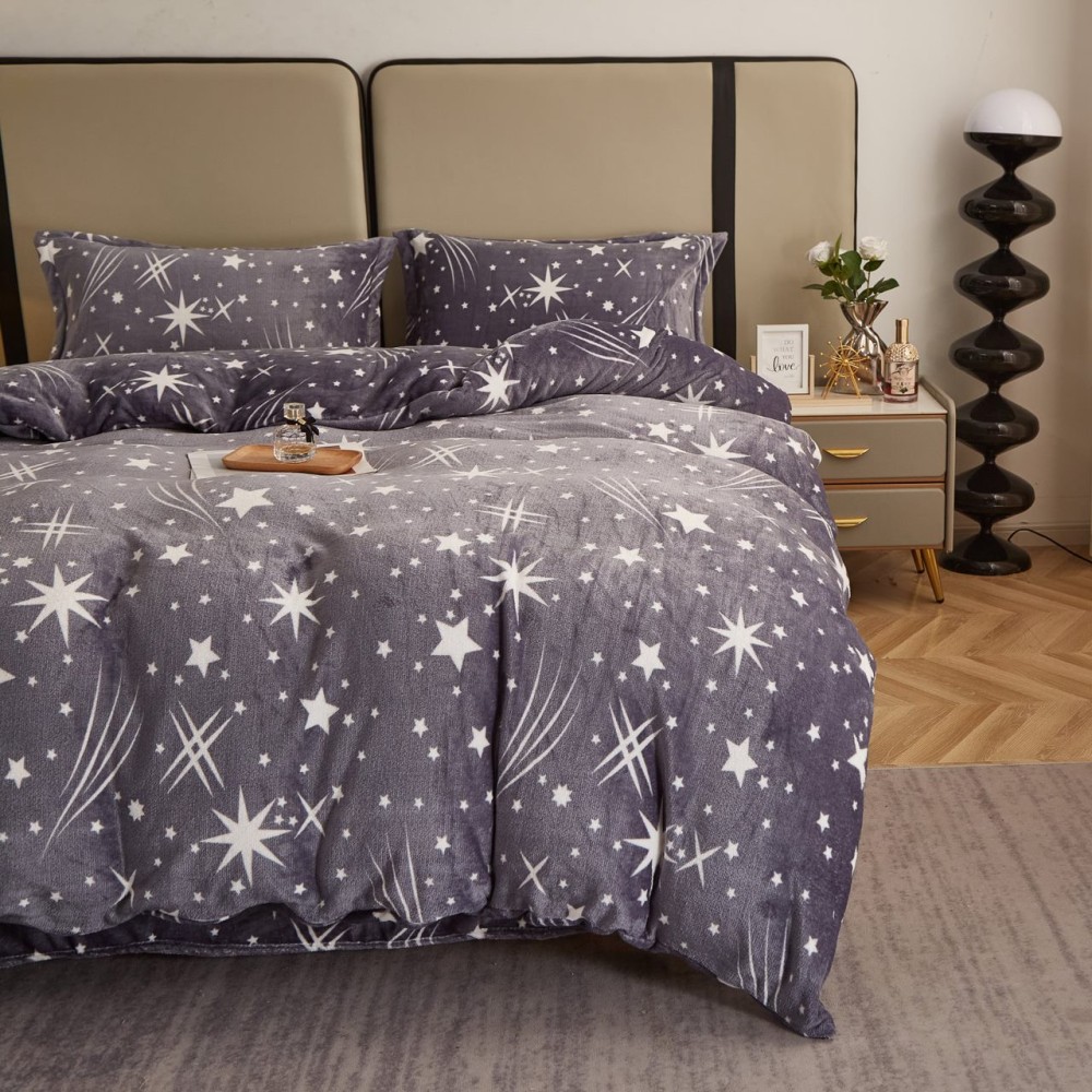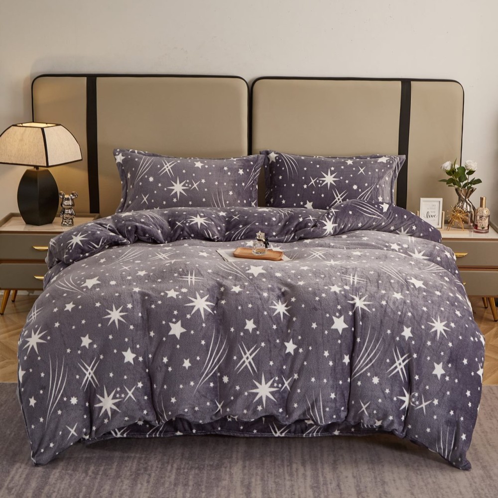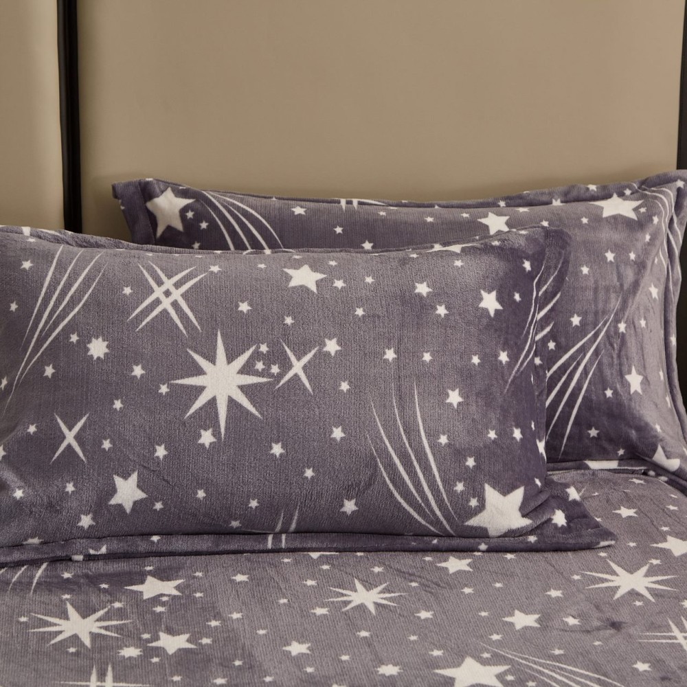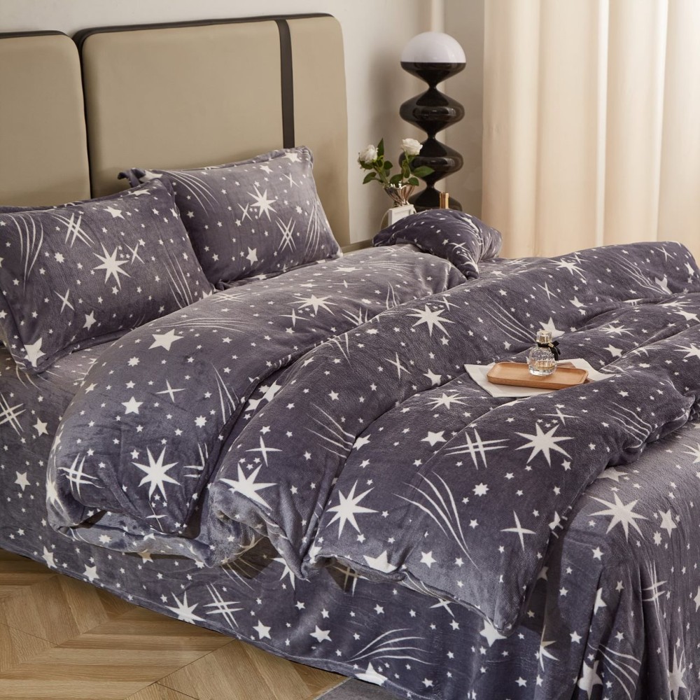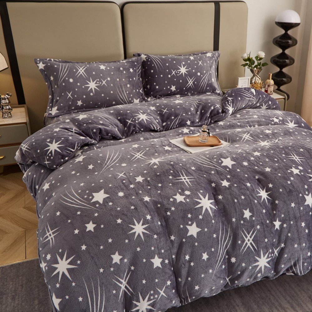 Lenjerie pat dublu, Super Pufoasa COCOLINO, 4 piese, Gri, stelute, cod produs: COB104