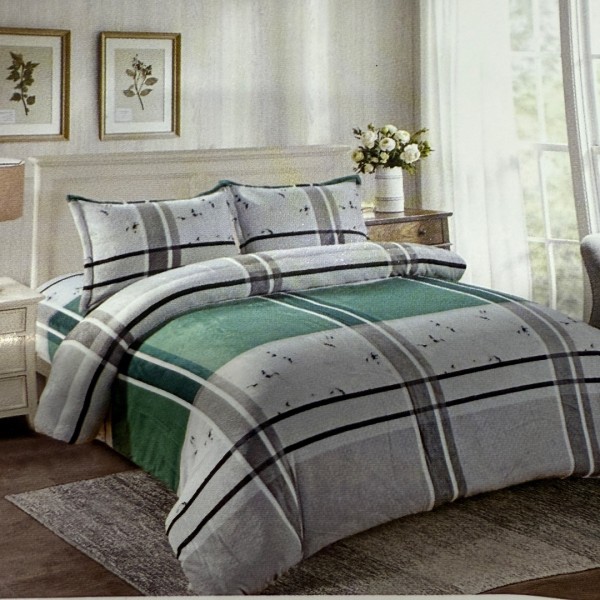 Lenjerie pat dublu, Super Pufoasa COCOLINO, 4 piese, Gri, Verde, dungi, CumparaMisim, cod produs: CSA-CC15