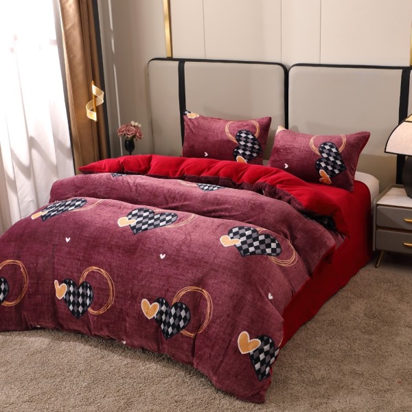 Lenjerie pat dublu, Super Pufoasa COCOLINO, 4 piese, Mov, inimioare, cod produs: BCC-LC204