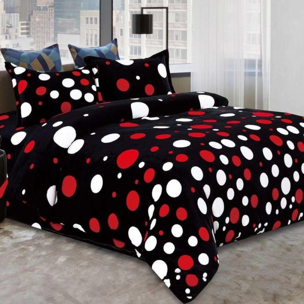 Lenjerie pat dublu, Super Pufoasa COCOLINO, 4 piese, Negru, Roșu, Alb, buline, CumparaMisim, cod produs: CSA-CC12