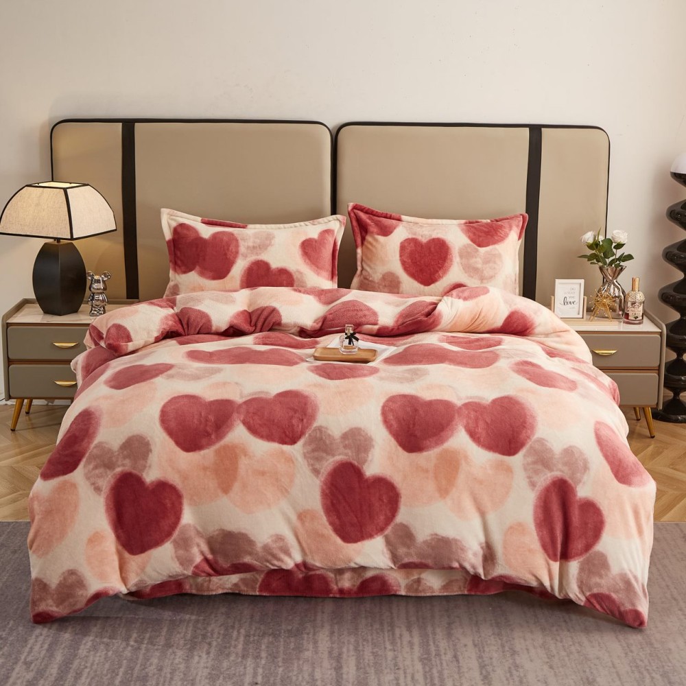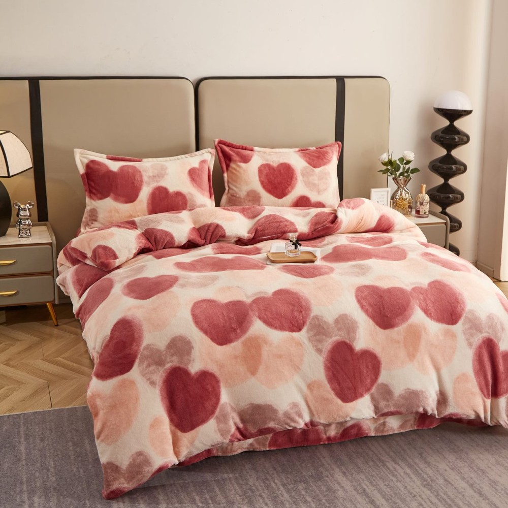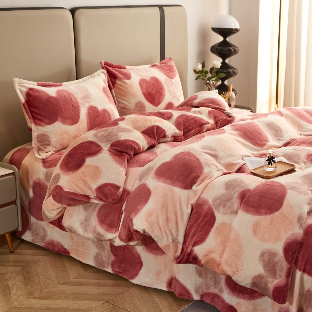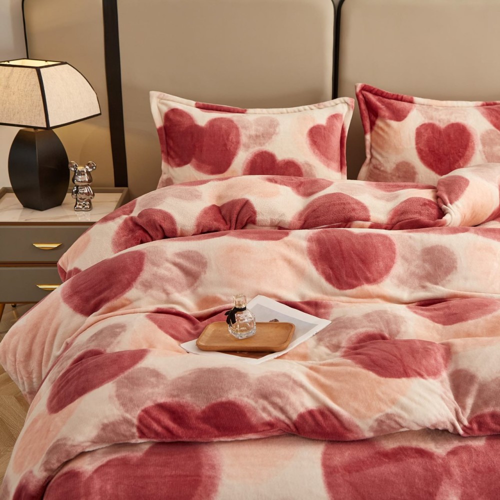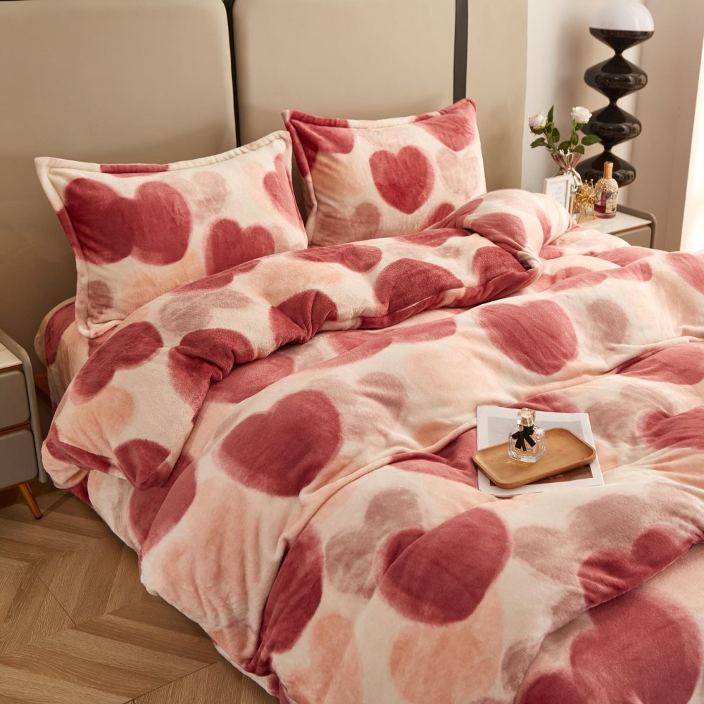 Lenjerie pat dublu, Super Pufoasa COCOLINO, 4 piese, Roz pudra, inimioare, cod produs: COB102