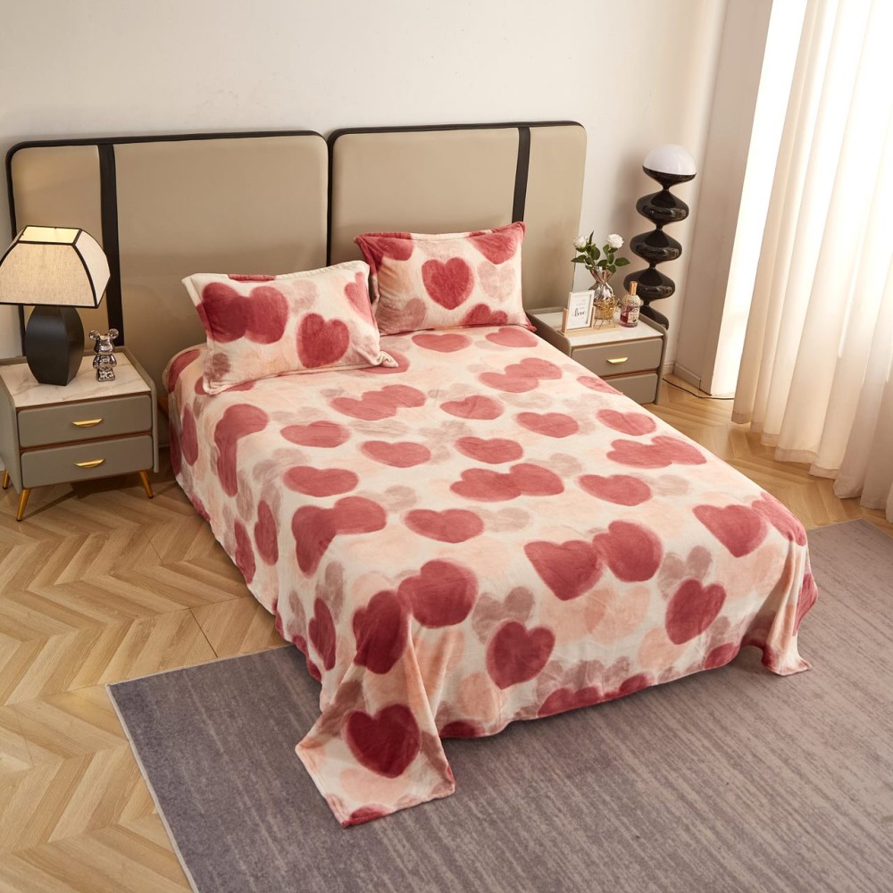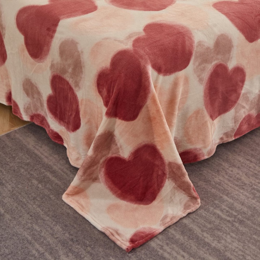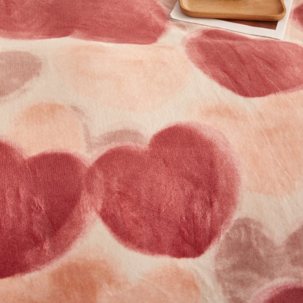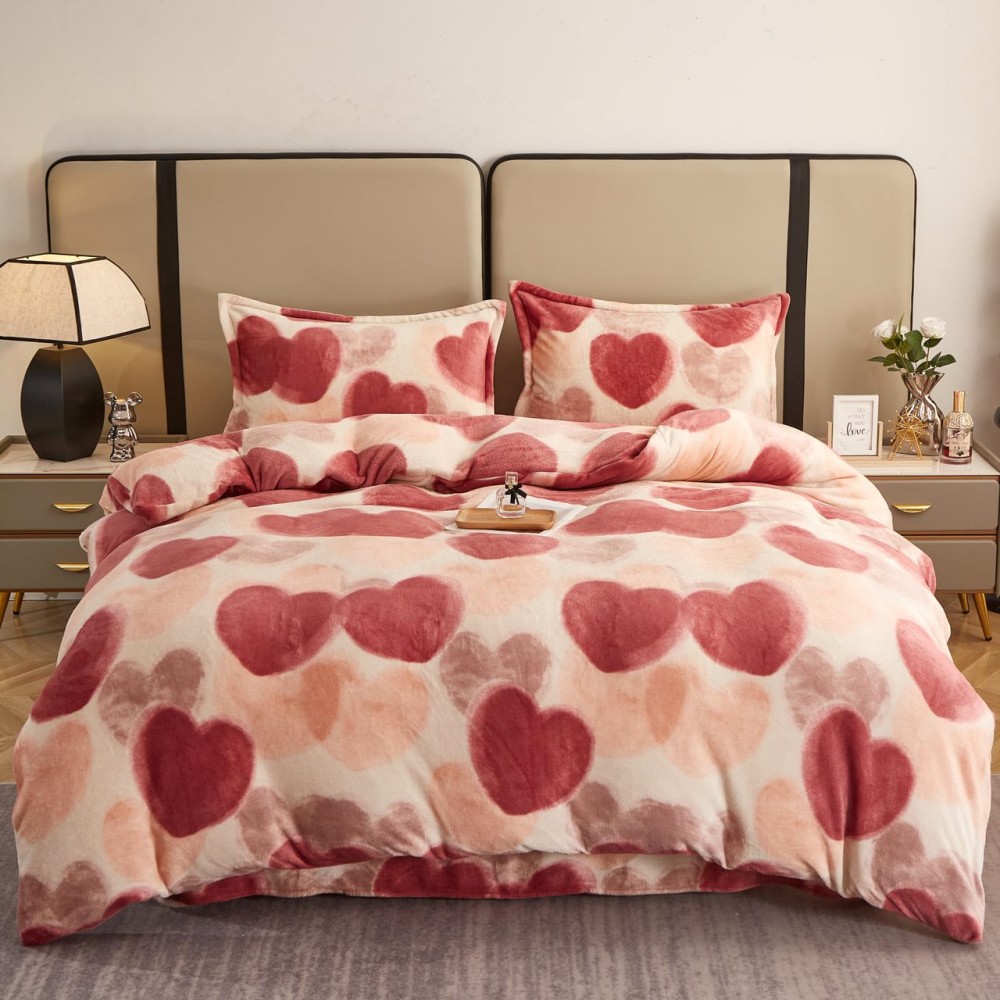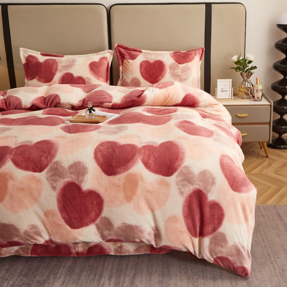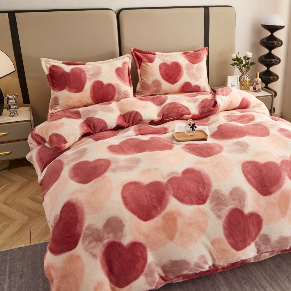 Lenjerie pat dublu, Super Pufoasa COCOLINO, 4 piese, Roz pudra, inimioare, cod produs: COB102
