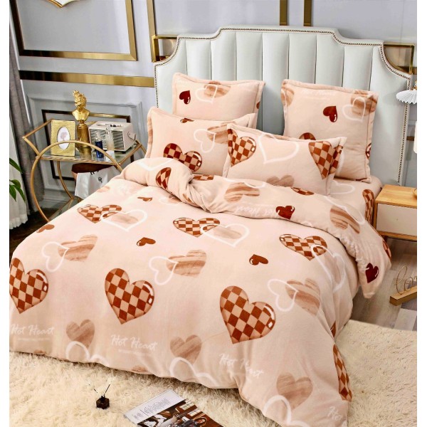 Lenjerie pat dublu, Super Pufoasa COCOLINO, 6 piese, Jojo Home, Crem, inimioare, cod produs: JOK345