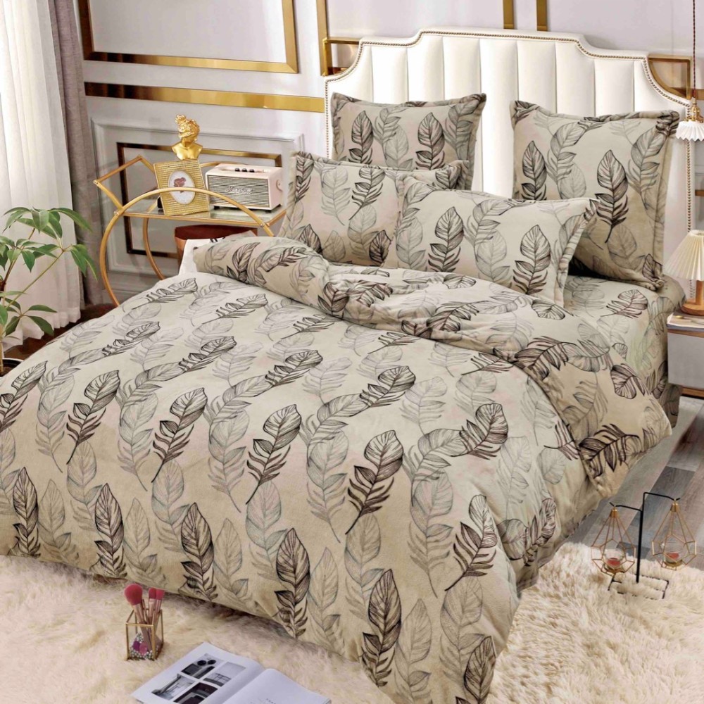 Lenjerie pat dublu, Super Pufoasa COCOLINO, 6 piese, Jojo Home, Bej, frunze, cod produs: JOK336