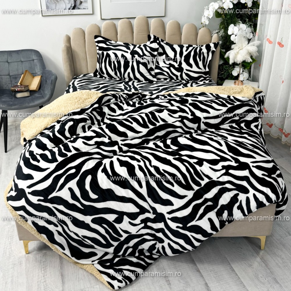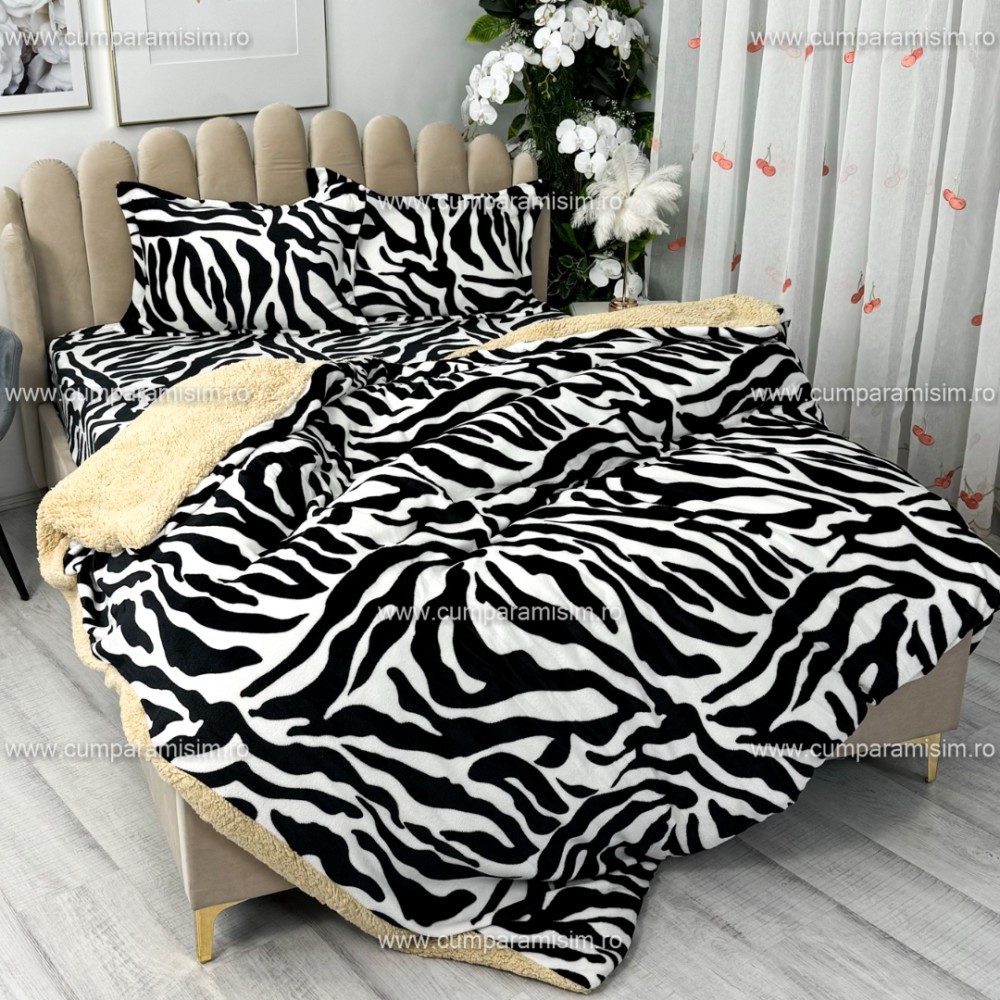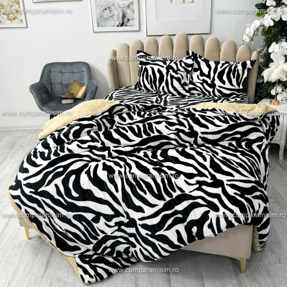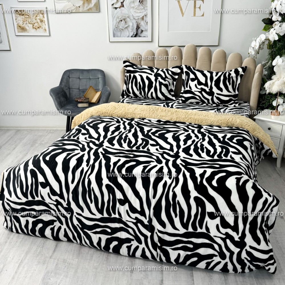 Lenjerie pat dublu, Super Pufoasa COCOLINO cu BLANITA, 4 piese, Alb-Negru, Zebra, CumparaMisim, cod produs: YAF102