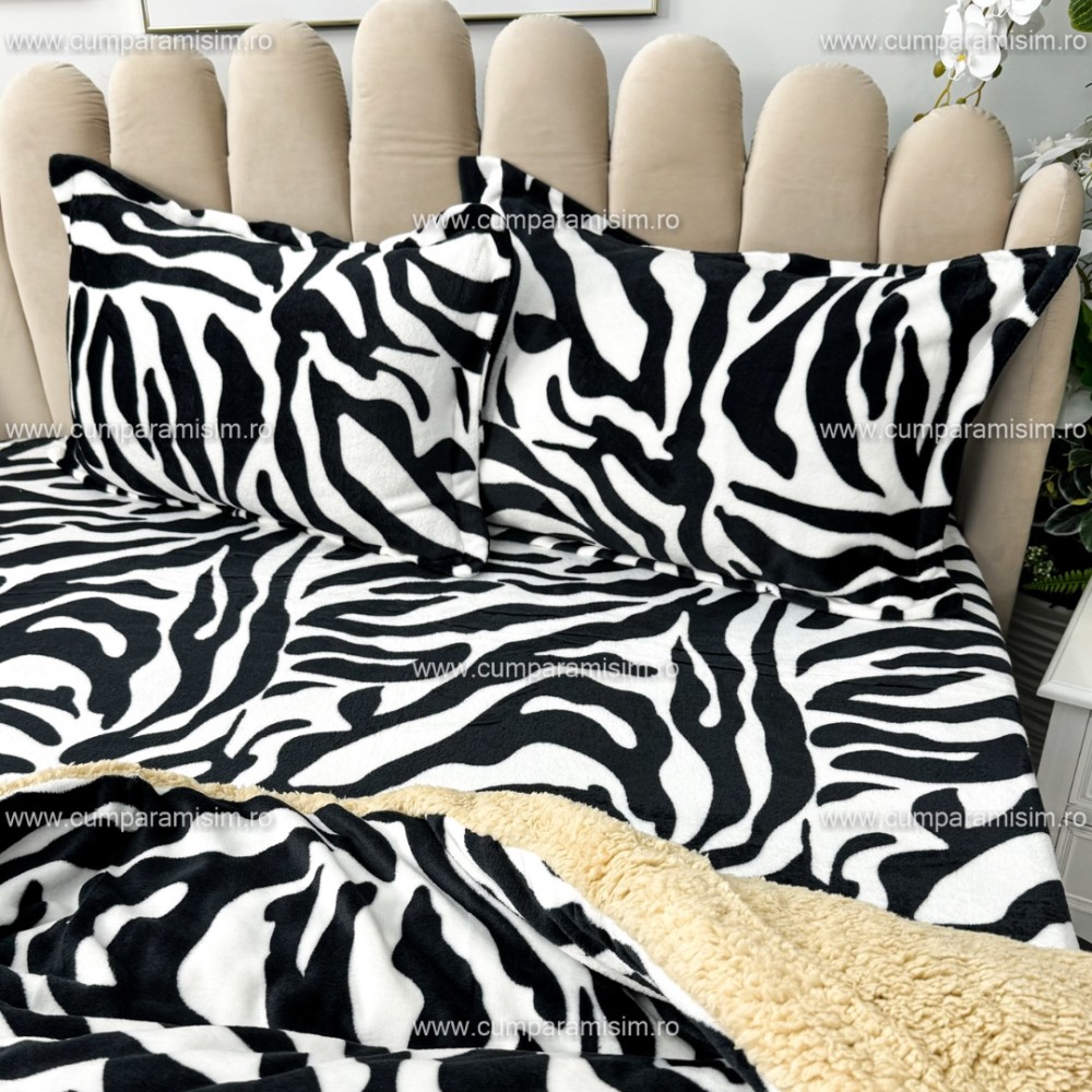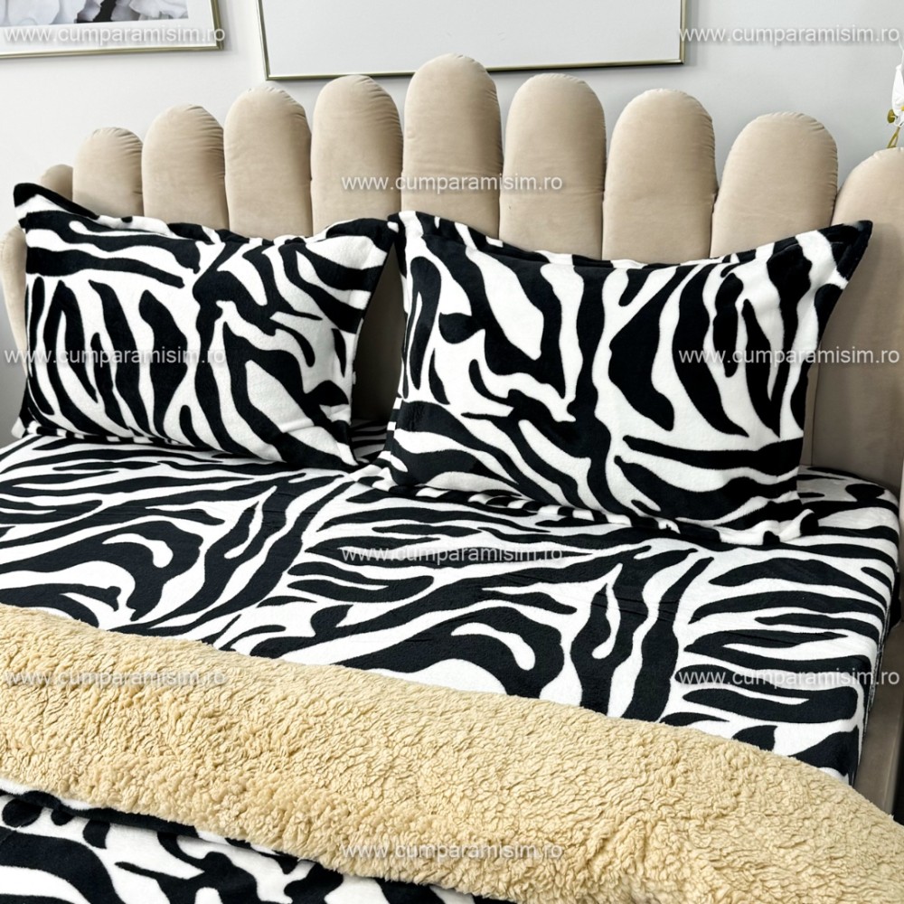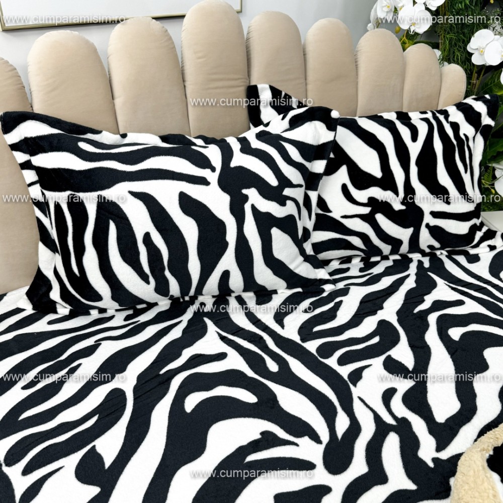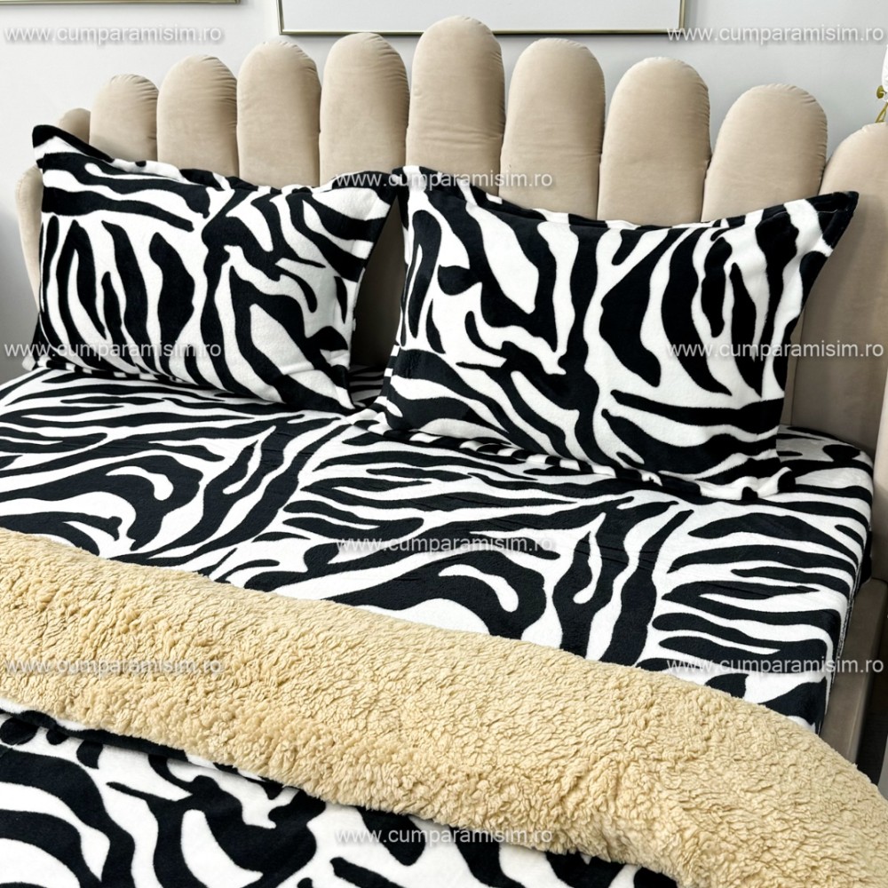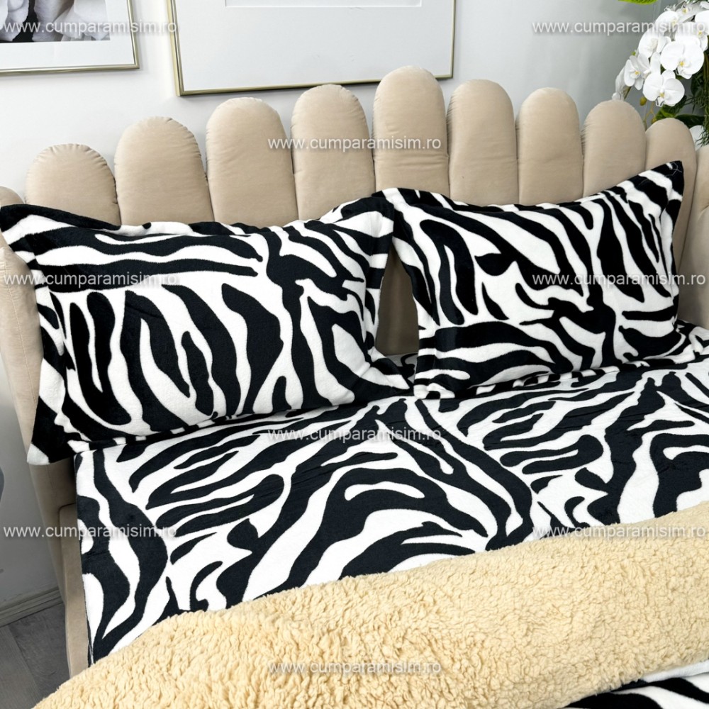 Lenjerie pat dublu, Super Pufoasa COCOLINO cu BLANITA, 4 piese, Alb-Negru, Zebra, CumparaMisim, cod produs: YAF102