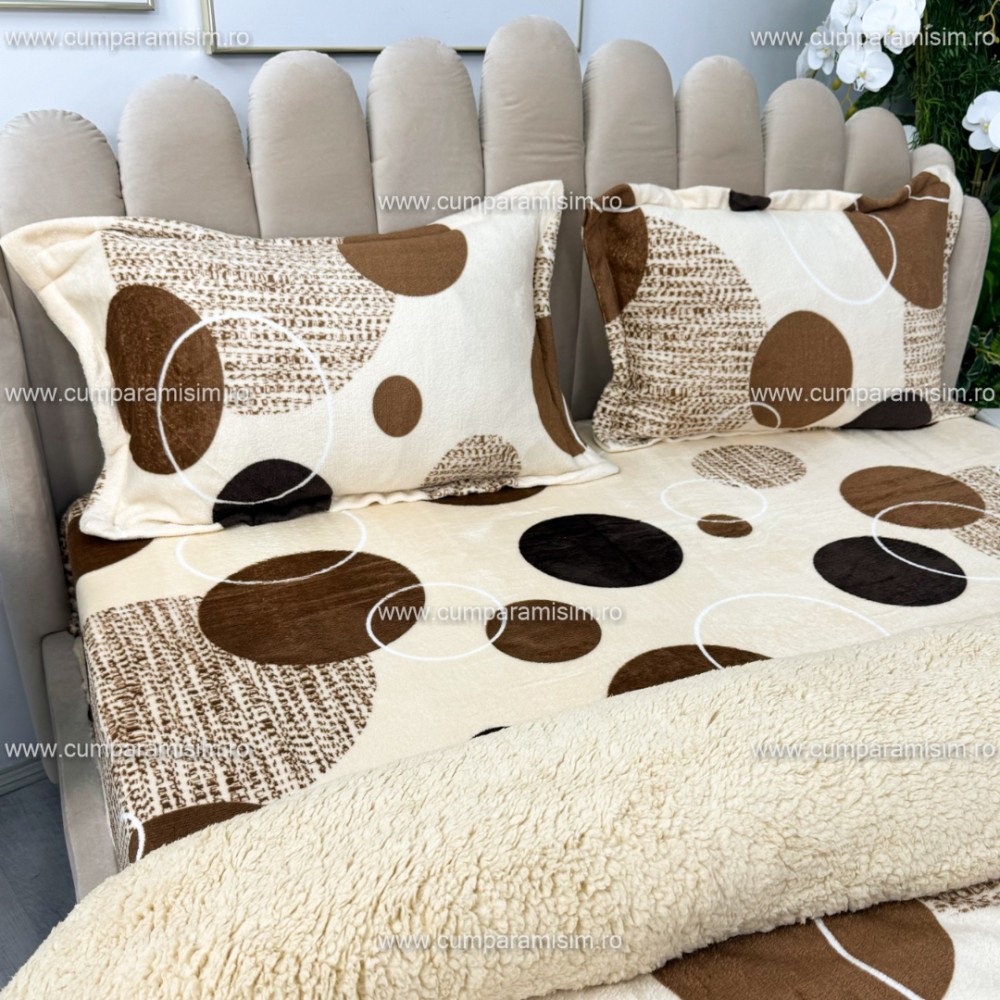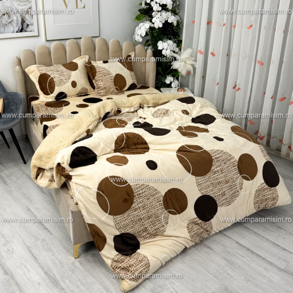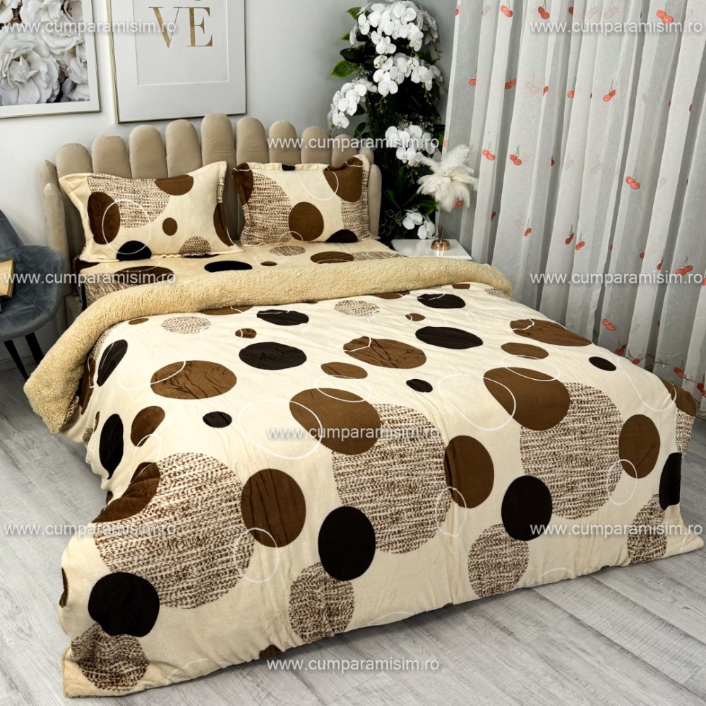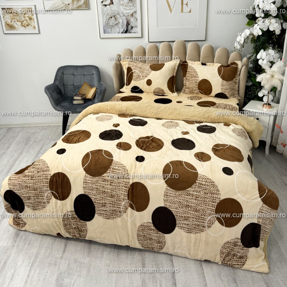 Lenjerie pat dublu, Super Pufoasa COCOLINO cu BLANITA, 4 piese, Bej, cercuri, CumparaMisim, cod produs: YAF140