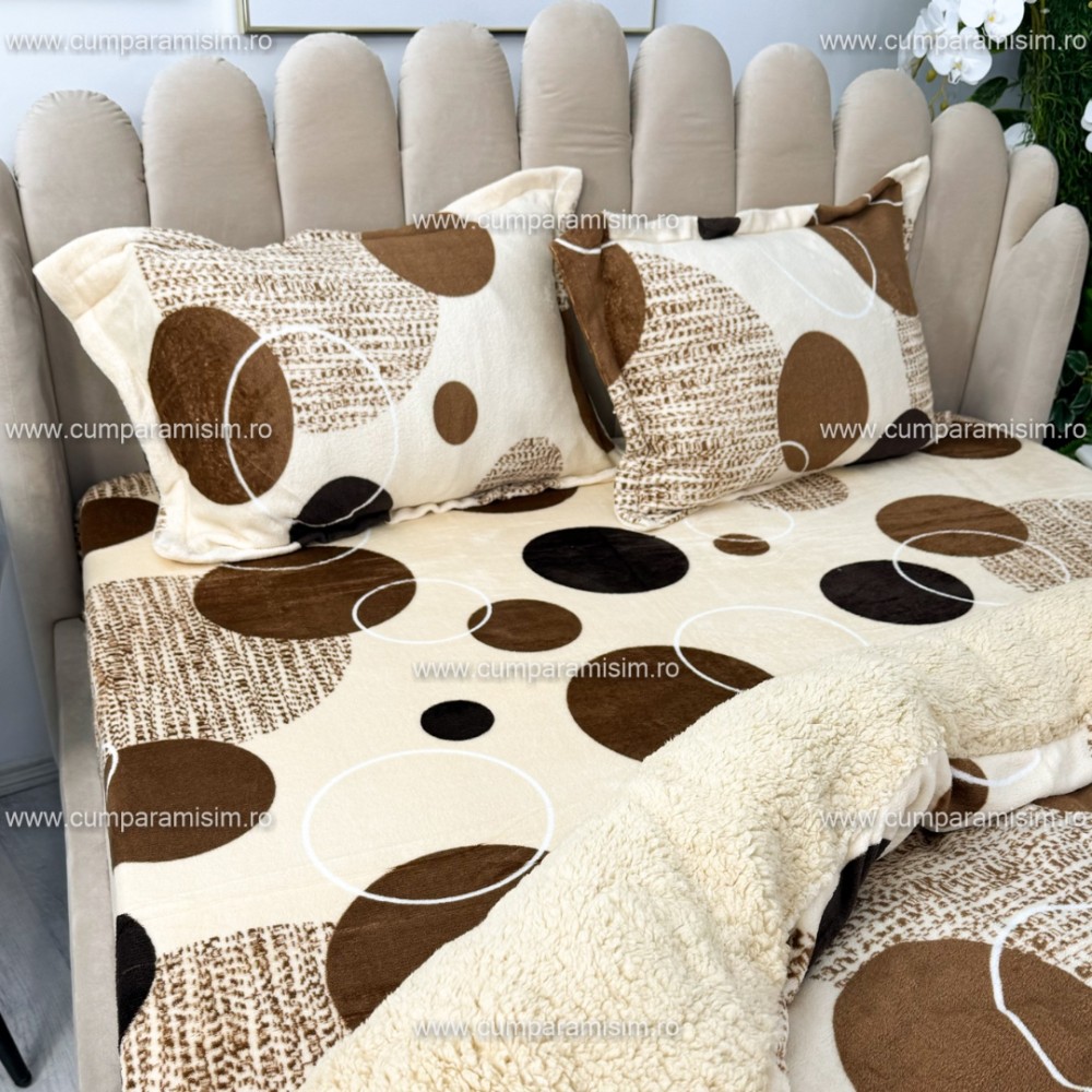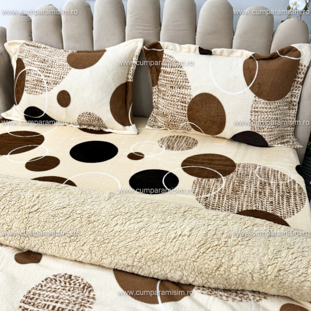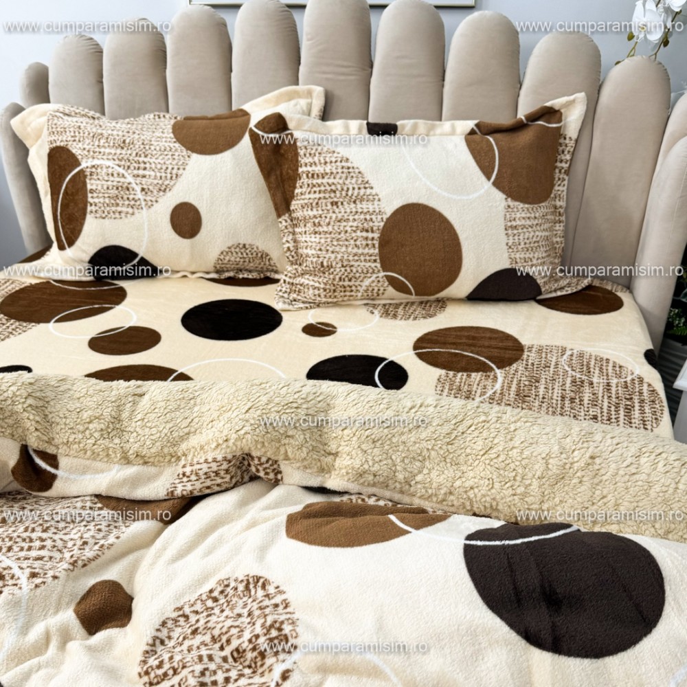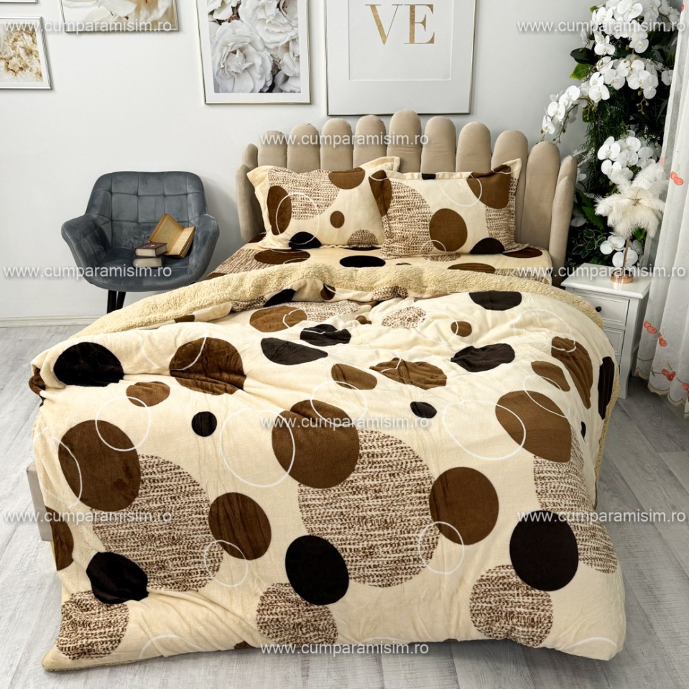 Lenjerie pat dublu, Super Pufoasa COCOLINO cu BLANITA, 4 piese, Bej, cercuri, CumparaMisim, cod produs: YAF140