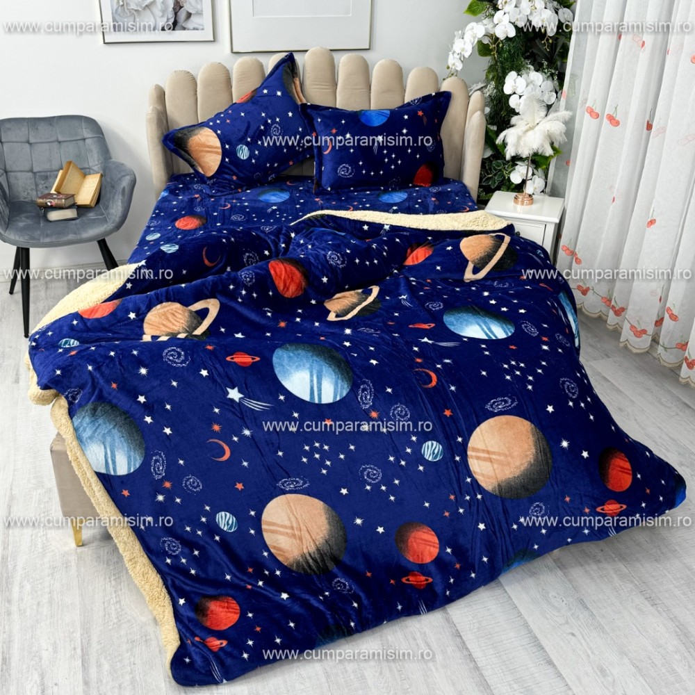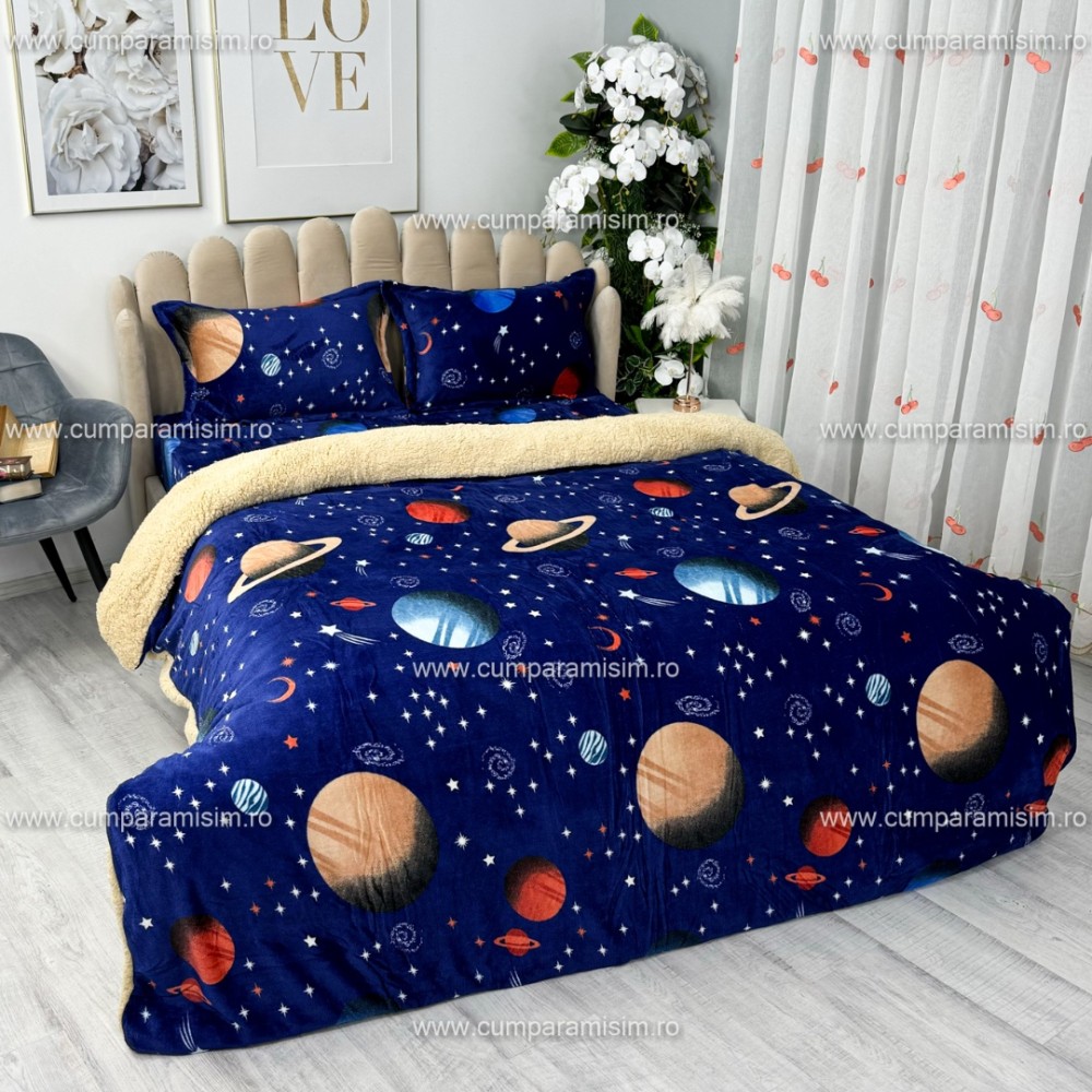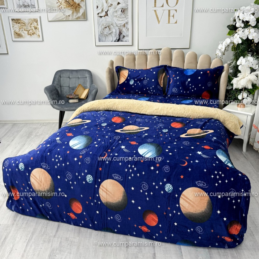 Lenjerie pat dublu, Super Pufoasa COCOLINO cu BLANITA, 4 piese, Bleumarin, planete, CumparaMisim, cod produs: YAF116